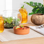 Enhance your dining experience with versatile oven-safe cookware. The Terra Tek Heat-Retentive Terracotta Cazuela is expertly crafted to deliver excellent heat retention. This terracotta cazuela features a brown glazed interior, providing a non-stick surface that enhances presentation and facilitates easy food release, making meal service not only appealing but efficient. Its premium terracotta construction withstands high temperatures, allowing for seamless use in ovens and microwaves, thus enabling your kitchen to maintain a flexible menu. With a 6.8-ounce capacity and dimensions of 4.75 inches by 4.75 inches by 1.6 inches, this tapas serving bowl is perfectly sized for individual servings, ensuring consistent portion control. Its dishwasher-safe design simplifies cleanup, reducing labor time and enhancing operational efficiency. Elevate your foodservice operations and delight guests with this small baking dish. Each order includes 2 Terra Tek Heat-Retentive Terracotta Cazuela.