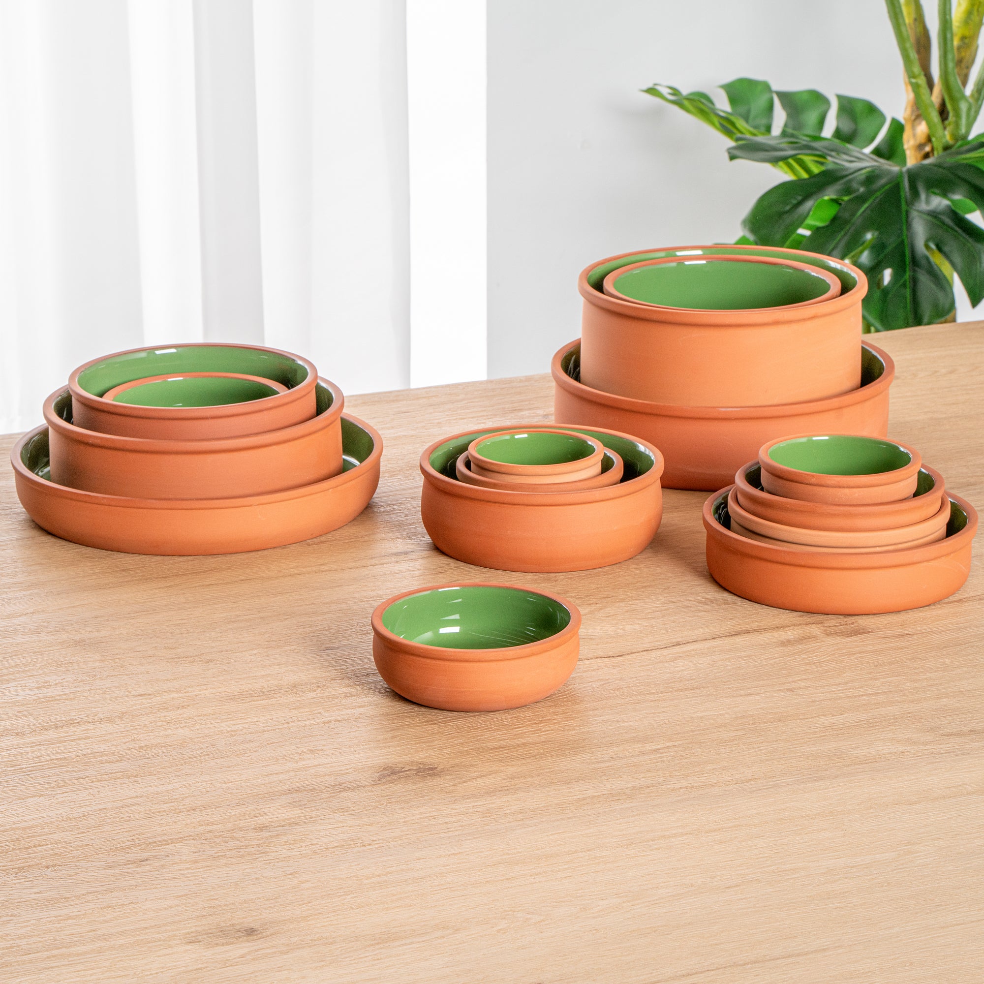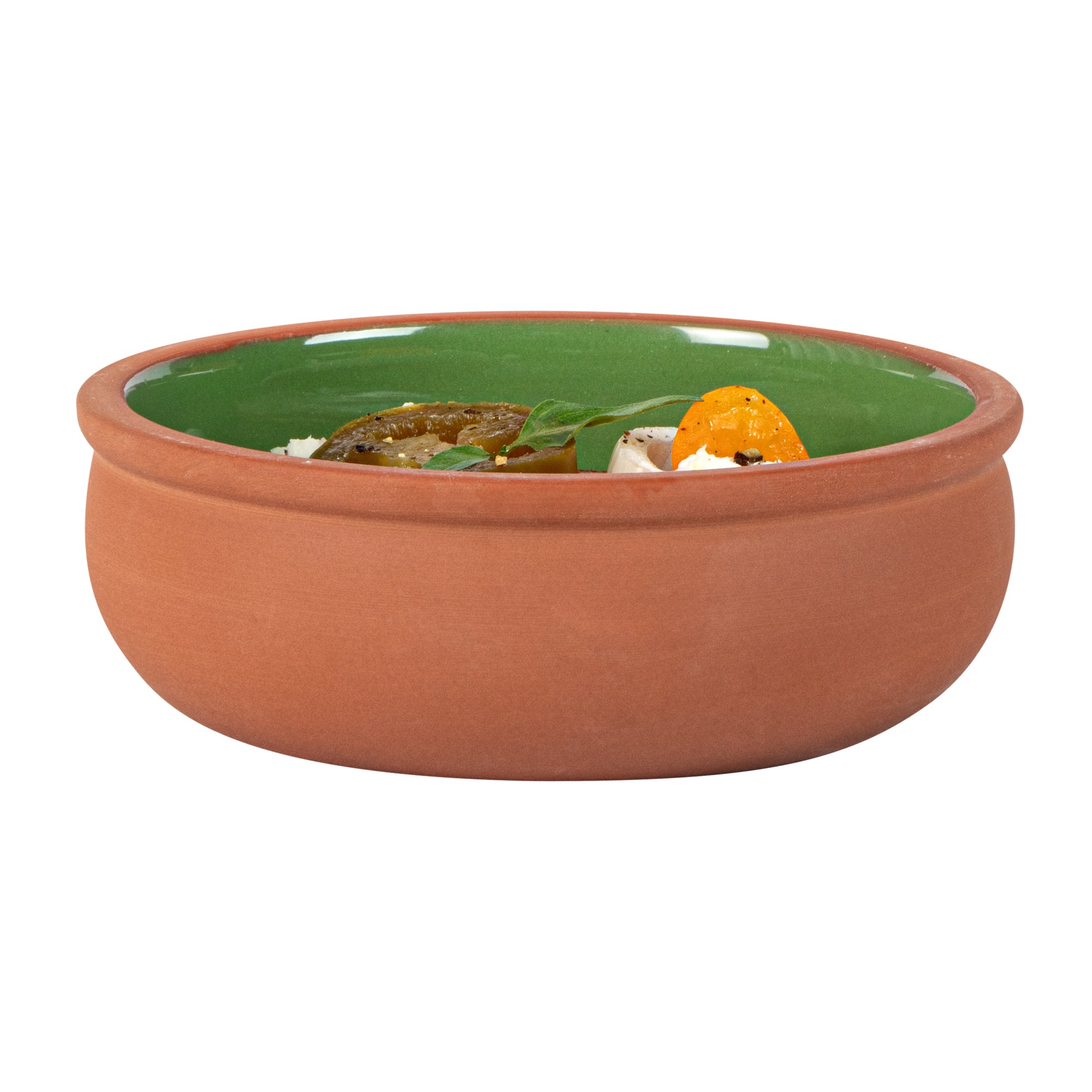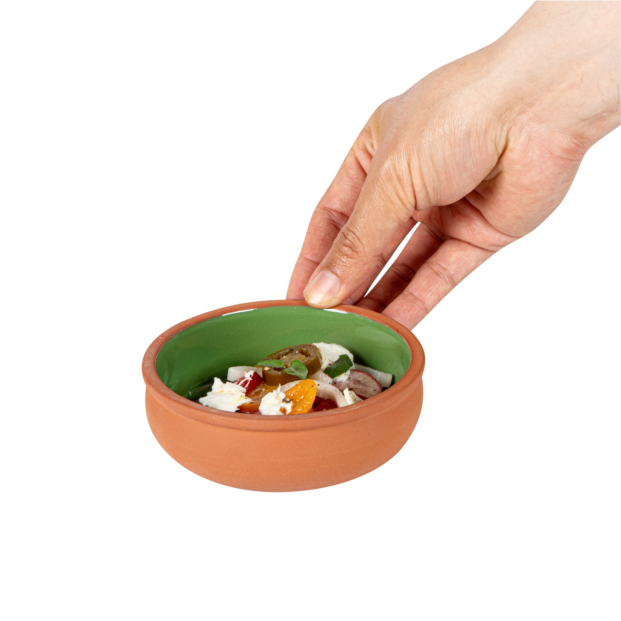 7 OZ TERRACOTTA CAZUELA BOWL - GREEN GLAZED INTERIOR, OVEN-SAFE