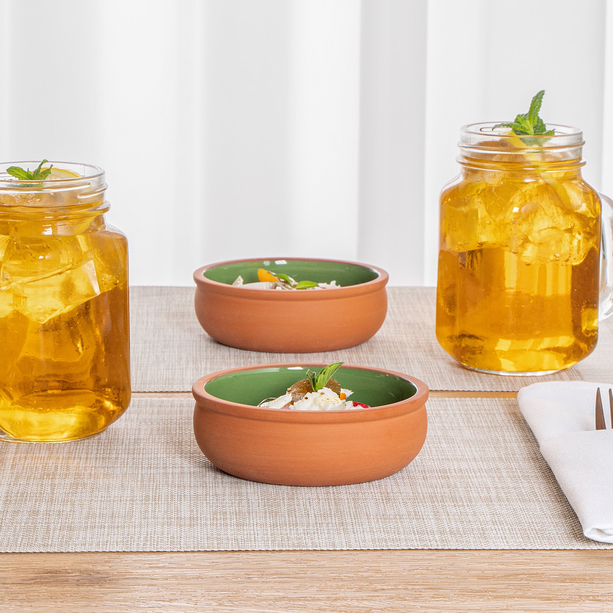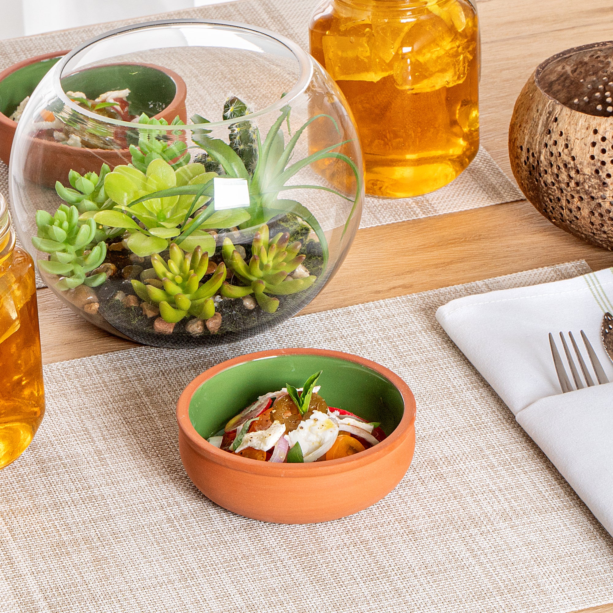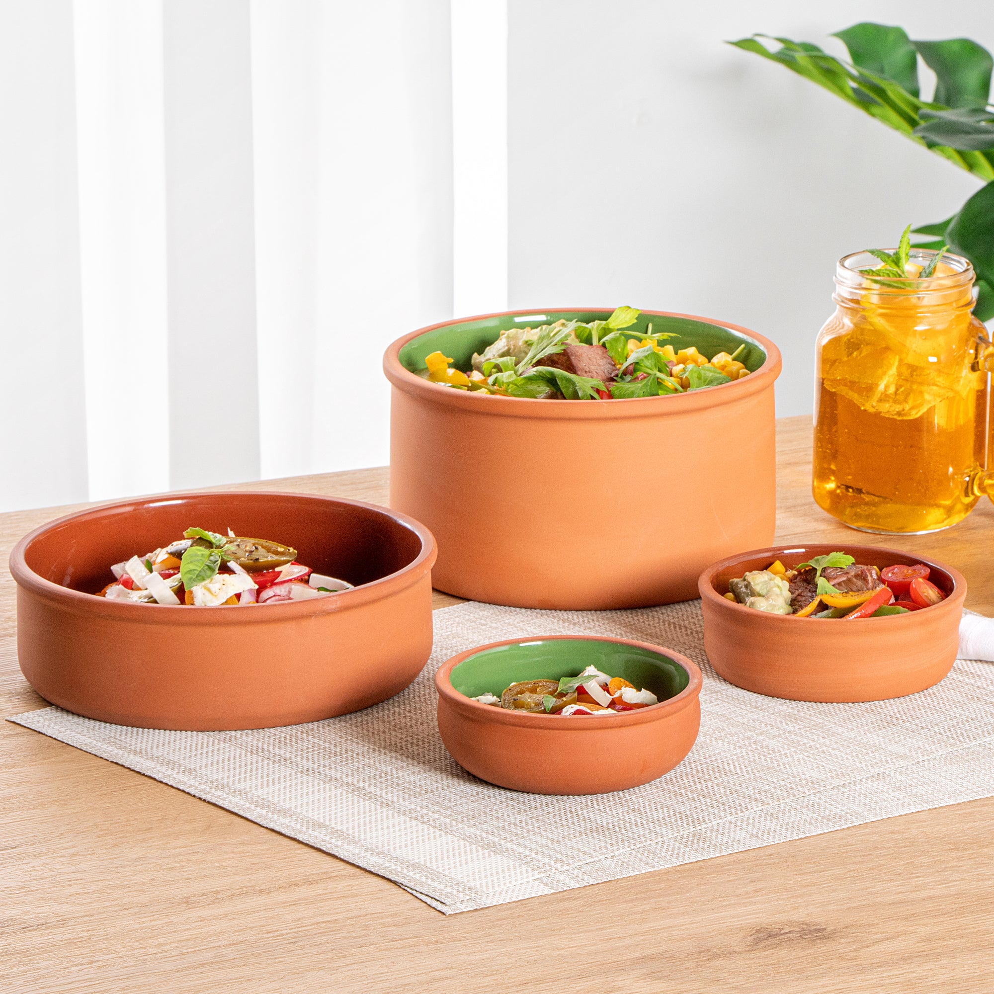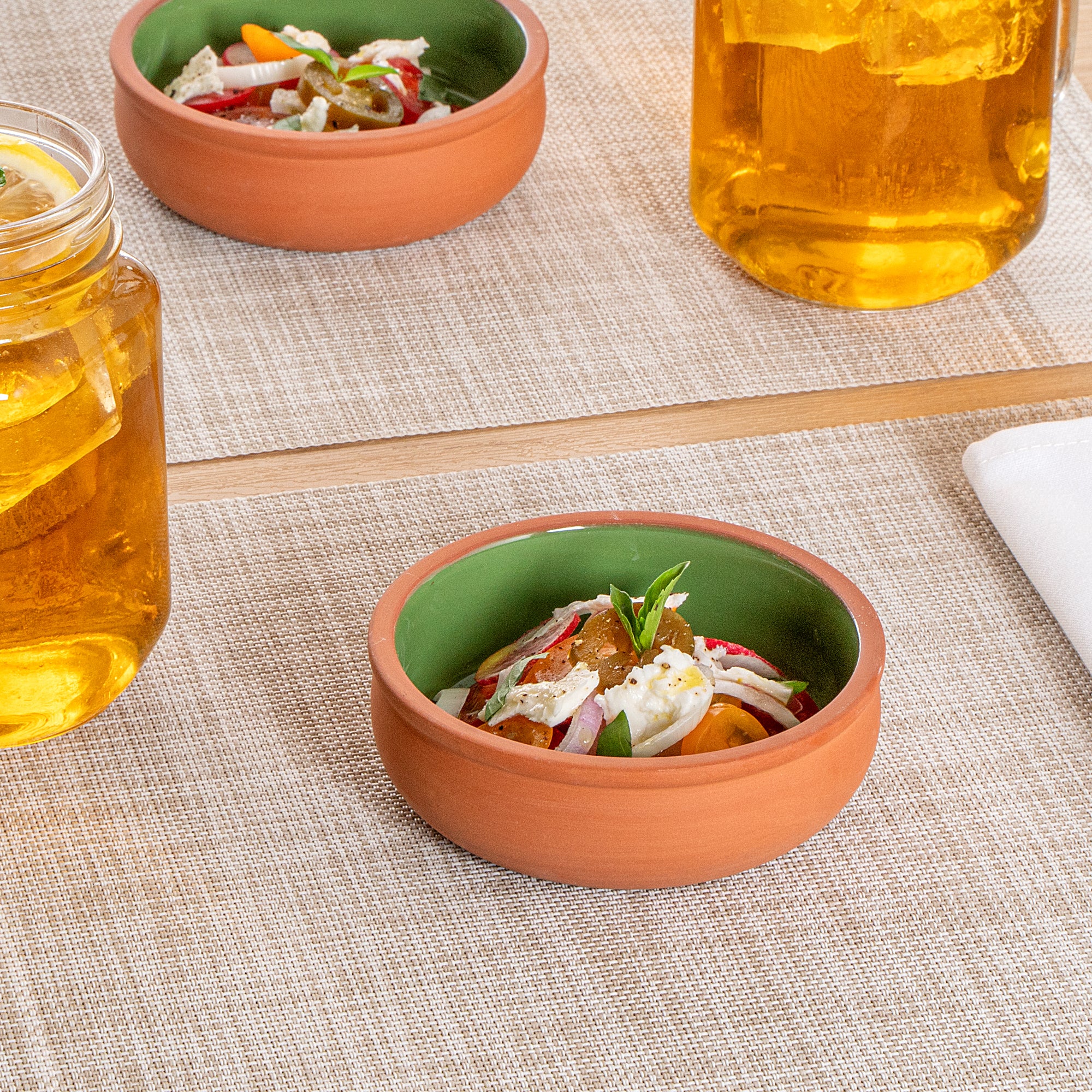7 OZ TERRACOTTA CAZUELA BOWL - GREEN GLAZED INTERIOR, OVEN-SAFE