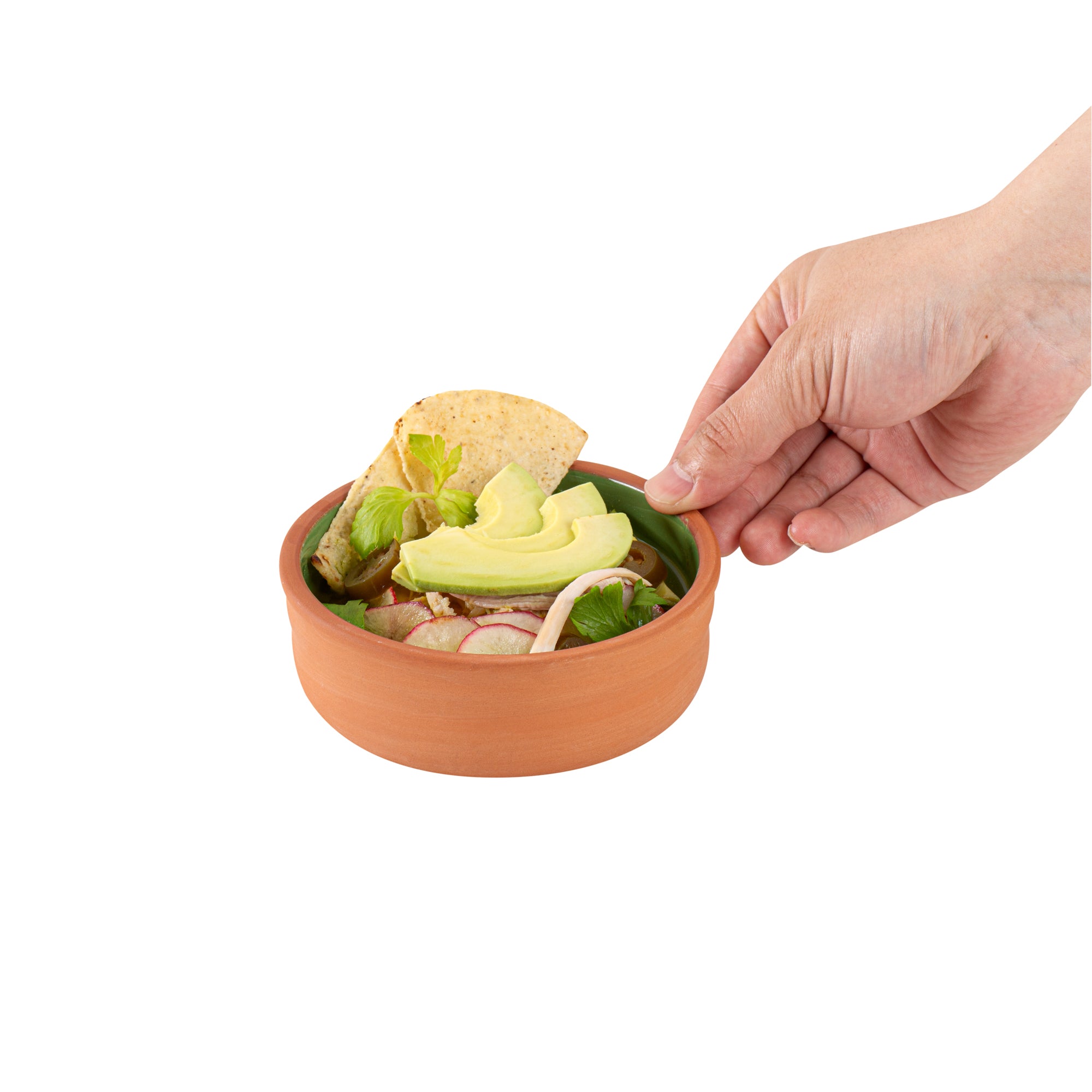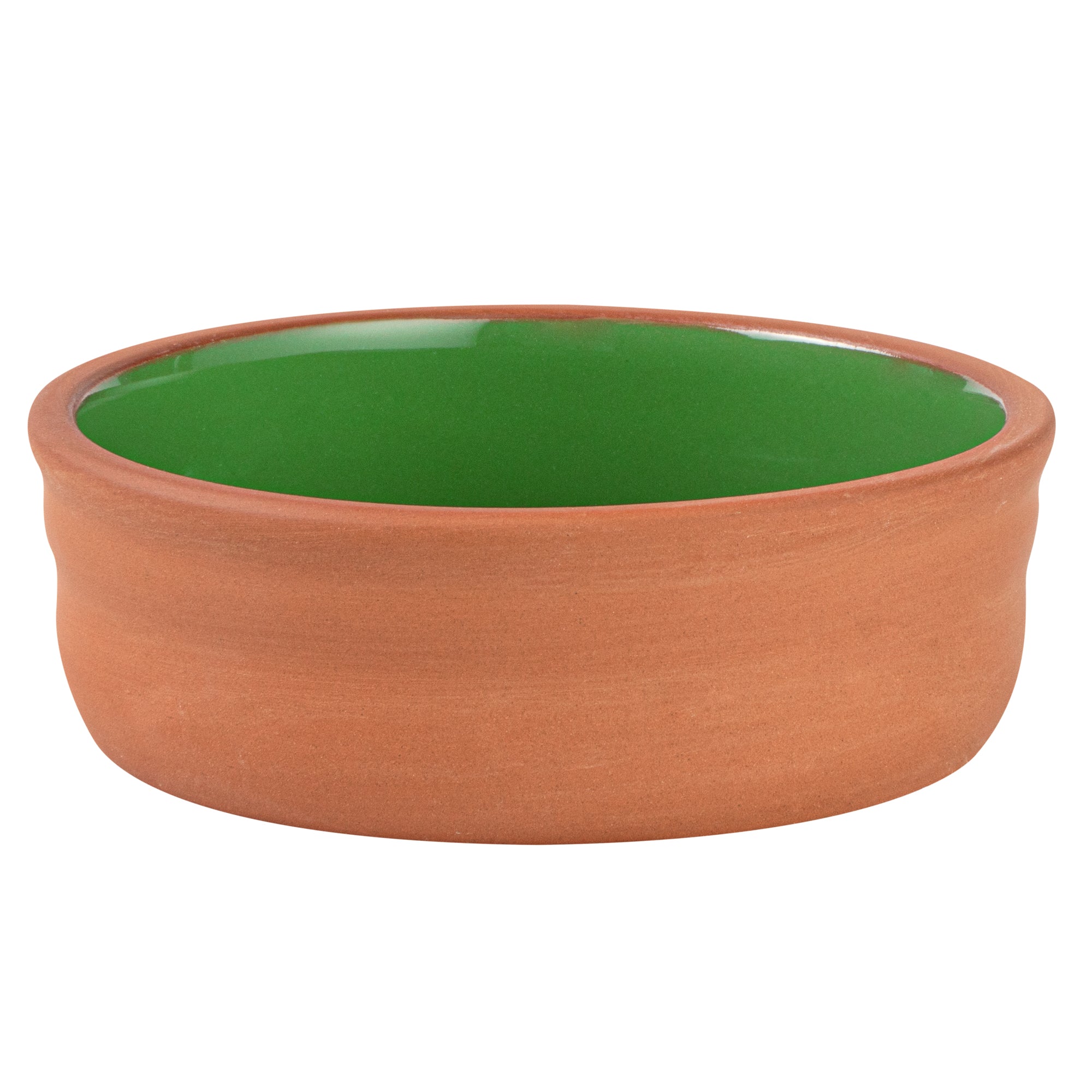 7 OZ TERRACOTTA CAZUELA BOWL - GREEN GLAZED INTERIOR, OVEN-SAFE