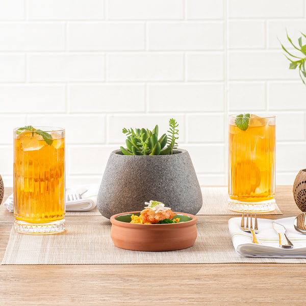Immerse your customers in a traditional dining experience with our Terra Tek 9-ounce Terracotta Cazuela Bowls. These recyclable cazuela bowls, crafted from durable terracotta, offer enduring quality for heavy use. Showcasing a beautiful green glazed interior, these terracotta cazuelas add a vibrant pop of color to any culinary presentation. Ideal for a variety of dishes, these greaseproof glazed bowls are oven-ready, allowing you to seamlessly transition from cooking to serving. For heating food before serving, these cooking bowls are also microwavable, perfect for quick reheating or cooking. With the added benefit of being freezable, these microwave cooking bowls can securely store leftovers, reducing food waste and saving time on meal prep. Cleaning up is a breeze with these gourmet kitchen bowls, as they are dishwashable, making them an essential addition to any busy kitchen. With a generous capacity of 9 ounces, these terracotta cazuelas bowls can hold hearty portions of your signature dishes. Measuring 4.75 inches in diameter by 1.5 inches in height, these reusable cooking bowls are perfectly sized for individual servings, making them ideal for restaurants, caterers, and family dinners alike. Sold in a 10 count box.