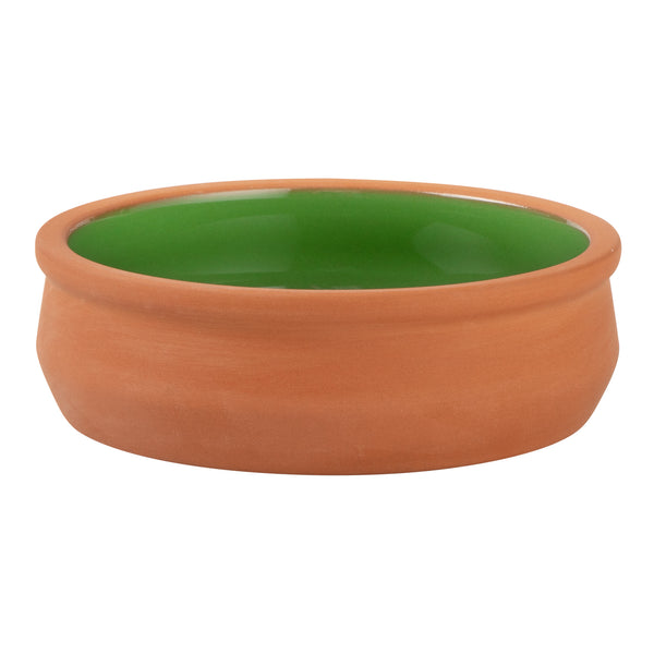 9 OZ TERRACOTTA CAZUELA BOWL - GREEN GLAZED INTERIOR, OVEN-SAFE