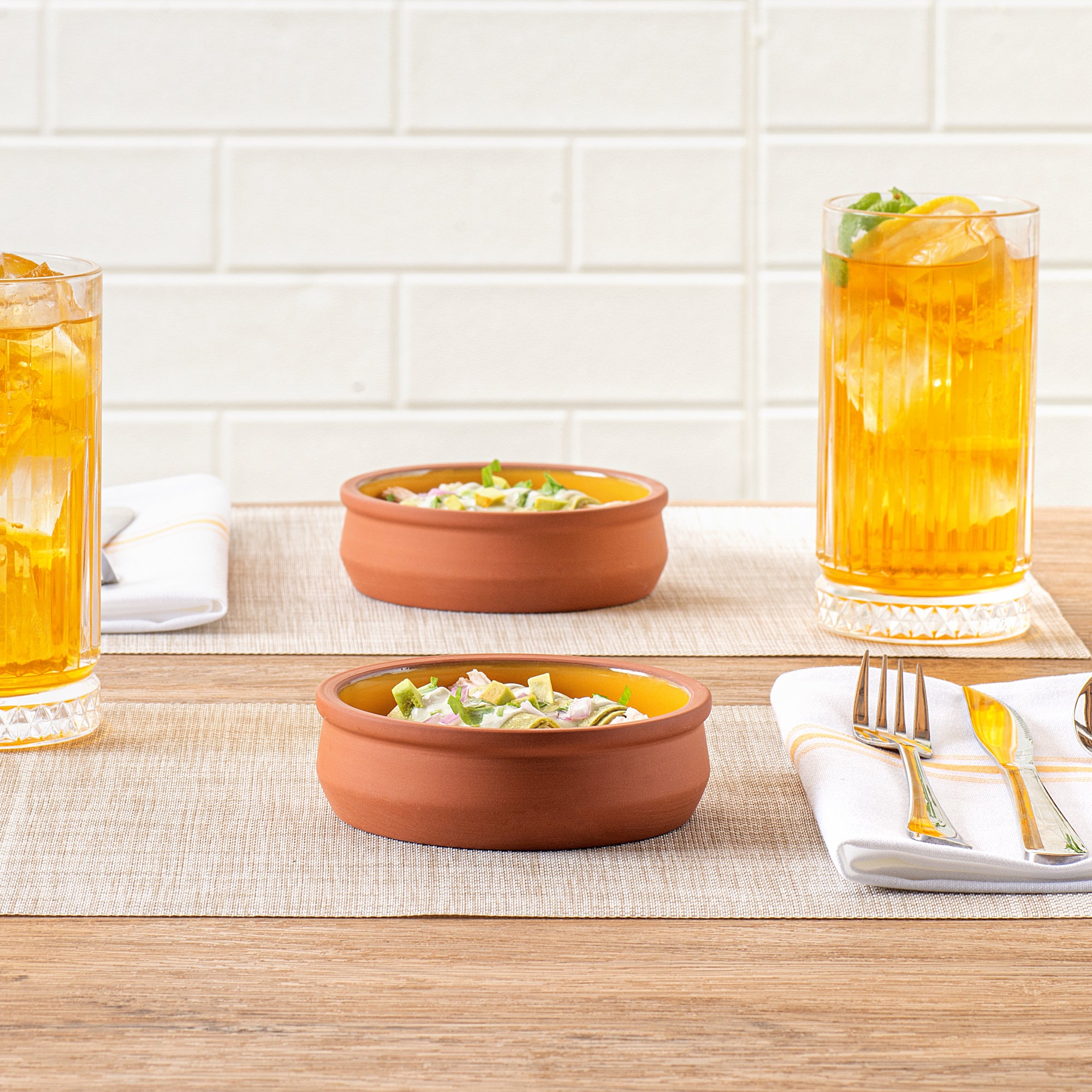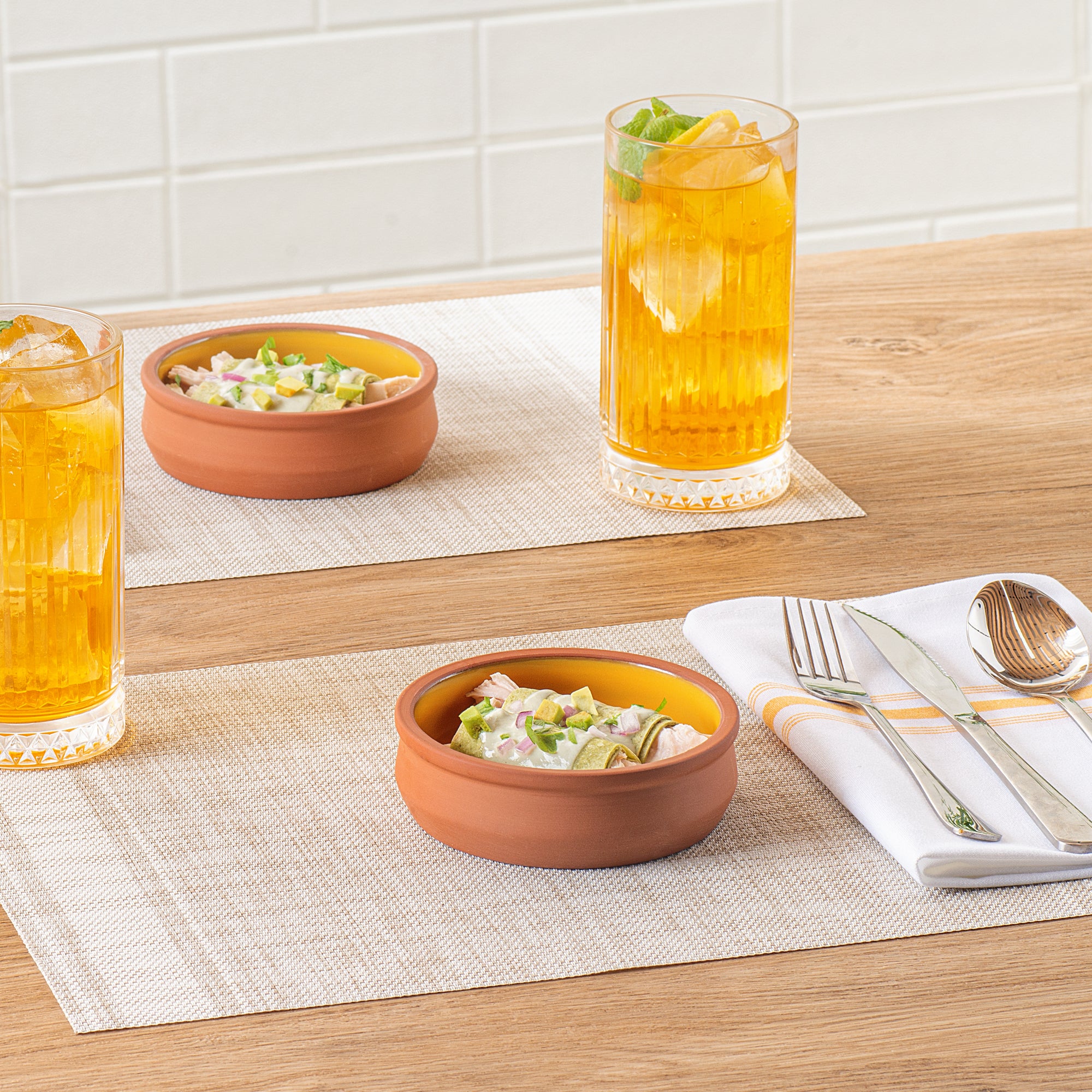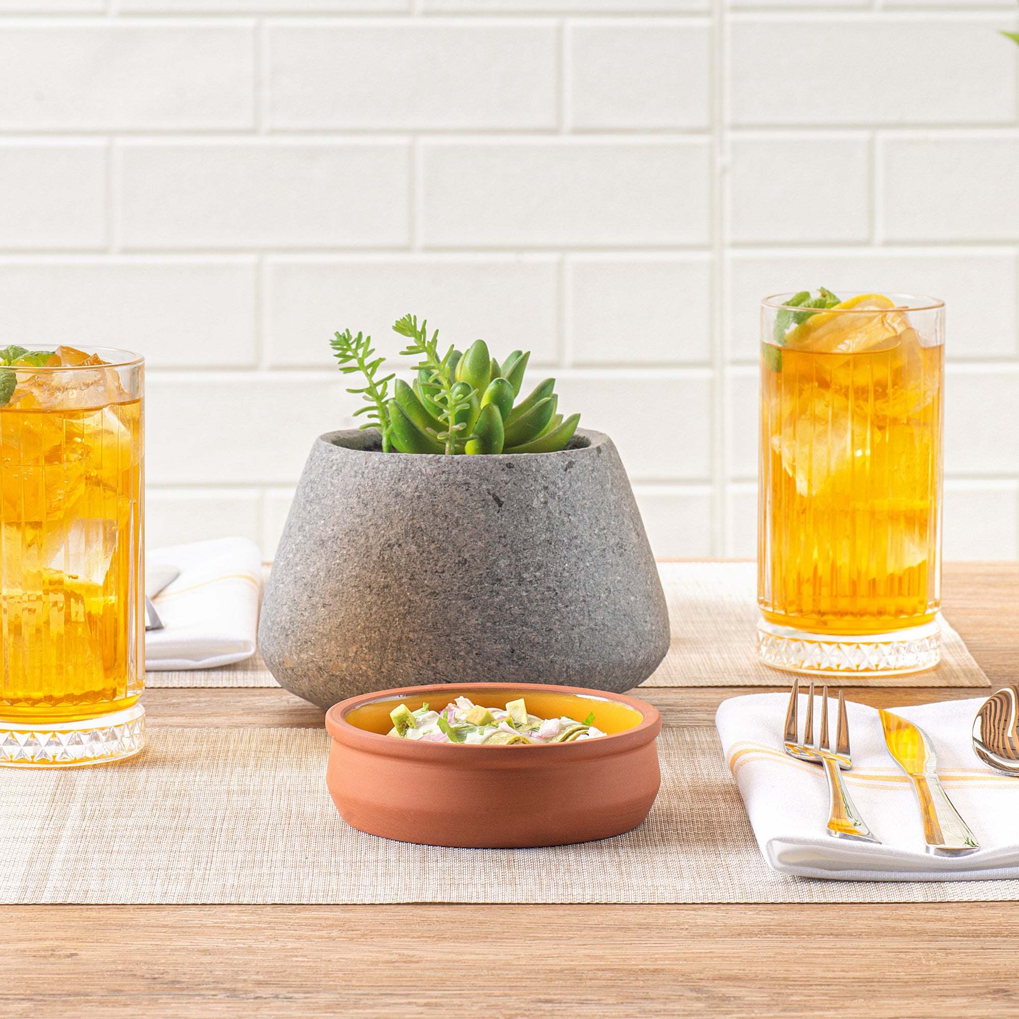 Introducing our Terra Tek 9-ounce Terracotta Cazuela Bowls, the perfect addition to elevate your culinary creations. Crafted from durable terracotta, these recyclable cazuela bowls are designed for long-lasting use in your gourmet kitchen. Showcasing a stunning yellow glazed interior, these greaseproof glazed bowls not only enhance the presentation of your dishes but also provide an added layer of protection. Oven-ready and versatile, these terracotta cazuelas can go from stovetop to table, making them the ultimate cooking bowls for any meal. To enhance meal prep, these reusable cooking bowls offer microwavable and freezable features, ensuring your dishes maintain the perfect temperature. For easy cleanup after a delightful meal, these gourmet kitchen bowls are dishwashable, enabling effortless maintenance. With a generous capacity of 9 ounces, these cazuela bowls, measuring 4.75 inches in diameter by 1.5 inches in height, are perfect for serving tapas, appetizers, and desserts. Sold in a 2 count box.