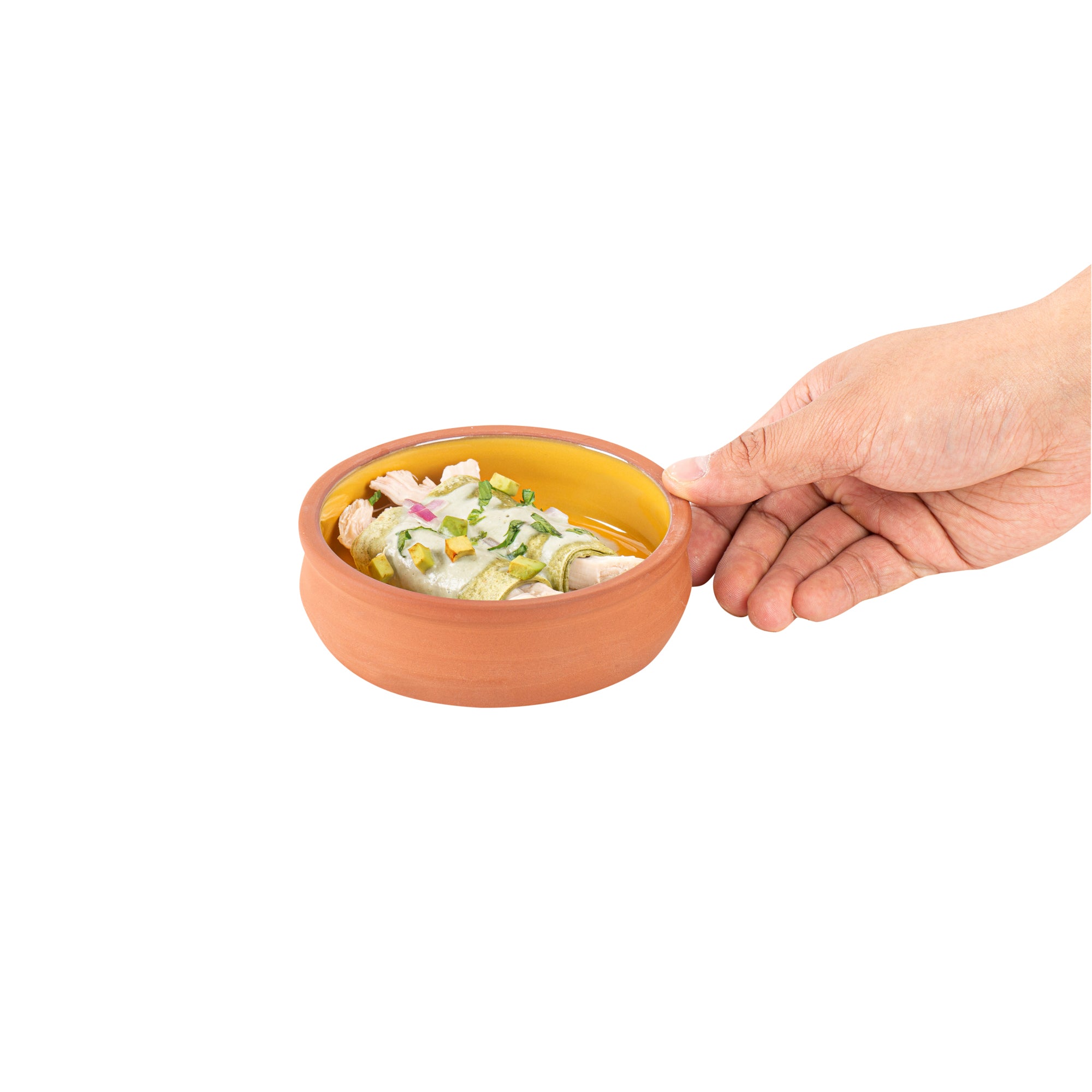 9 OZ TERRACOTTA CAZUELA BOWL - YELLOW GLAZED INTERIOR, OVEN-SAFE