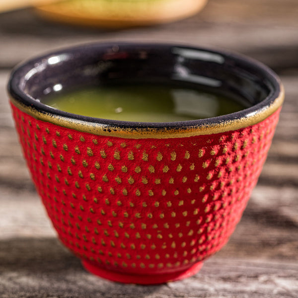 Heighten customer’s tea drinking experience with our Tetsubin 2-ounce Red Cast Iron Tea Cups. The high-quality cast iron construction of these stylish tea cups keeps hot beverages from cooling and enhances the flavor complexities of your teas. With a Japanese-inspired hobnail design, these iron tea cups give your tea servings a traditional look and feel. Designed with an elegant red finish, these Japanese tea cups elevate the deep hues of your fruit and herbal teas. Equipped with an enamel coated interior, these red tea cups are corrosion-resistant for long-lasting use. These 2-ounce hobnail tea cups have a 2.5-inch diameter and measure 1.75 inches tall. Great for hotels, tea houses, and catered events, these enamel tea cups are crack-resistant and shatterproof to maintain their premium look. Pair these Asian tea cups with our cast iron teapot (SKU: RWM0082R) to create a complete tea set. To preserve their cast iron construction, we recommend hand washing only. Sold in a 2 count box. Teapots are available and sold separately.