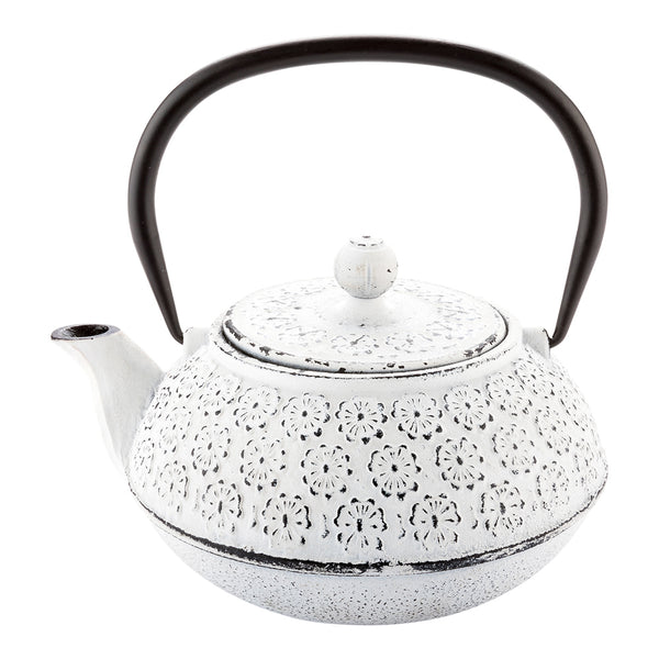 30 OZ WHITE CAST IRON TEAPOT - CHERRY BLOSSOM