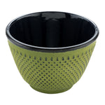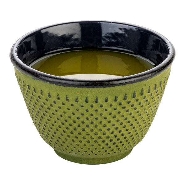Have customers comfortably sip tea with our Tetsubin 4-ounce Green Cast Iron Tea Cups. Constructed from premium cast iron, these durable tea cups preserve the warm temperature of your drinks to bring out the spicy or sweet flavors of your delicious teas. Equipped with a Japanese-inspired hobnail exterior, these cast iron tea cups have a vintage look to give your customers an authentic tea drinking experience. Designed with a beautiful green finish, these Japanese tea cups add vintage flair to the environment at your hotel, cafe, catered event, or tea house. The enamel coated interior of these green tea cups are corrosion-resistant, making them perfect for daily servings of hot brews. These 4-ounce hobnail tea cups have a 3-inch diameter and measure 3.25 inches in height. Great for transporting from your establishment to your catered venue, these enamel tea cups are crack-resistant and shatterproof. Match these Asian tea cups with our cast iron teapots (SKU: RWM0082G) for an authentic tea party experience. In order to maintain their premium appearance, we recommend hand washing only. Sold in a 2 count box. Teapots are available and sold separately.