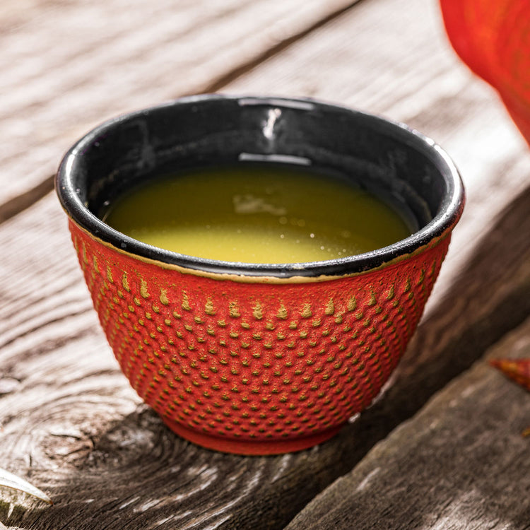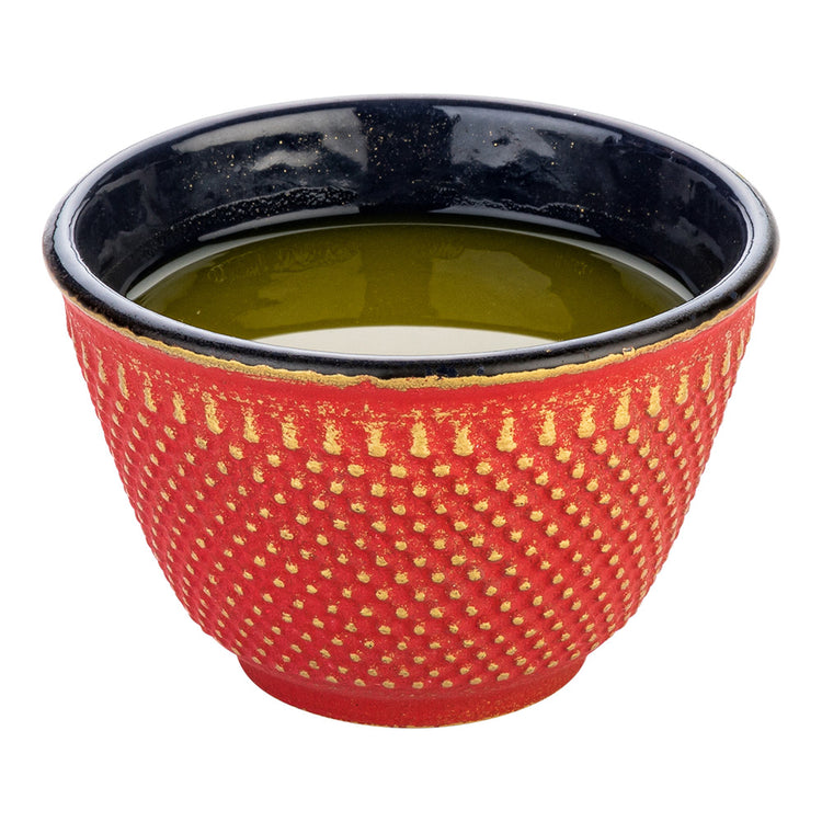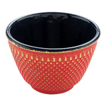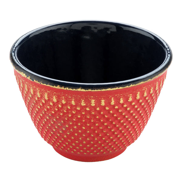 Cater an afternoon tea party with our Tetsubin 4-ounce Red Cast Iron Tea Cups. The cast iron construction of these sophisticated tea cups keeps your warm beverages hot and steamy while maxmizing the flavors of your chamomile, chai, and peppermint teas. Their hobnail exterior elevates your tablescapes with a traditional Japanese-inspired design to give your customers an authentic tea serving experience. Featuring an elegant red finish, these cast iron tea cups beautifully complement the place settings at your hotel, tea house, or cafe. These 4-ounce red tea cups measure 3 inches in diameter by 3.25 inches tall. With an enamel coated interior, these hobnail tea cups are corrosion-resistant to prevent signs of wear after prolonged use. These enamel tea cups are shatterproof and crack-resistant, making them perfect for transporting on a serving tray. Combine these Japanese tea cups with our cast iron teapots (SKU: RWM0082R) to enhance your serving style. We recommend hand washing these iron tea cups to preserve their high-grade appearance and last you a long time. Sold in a 2 count box. Teapots are available and sold separately.