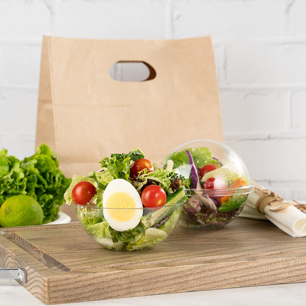 Featuring a sphere design, these one-of-a-kind take out bowls instantly enhance your salad presentations. Effortlessly make the meals offered at your event the talk of the party!