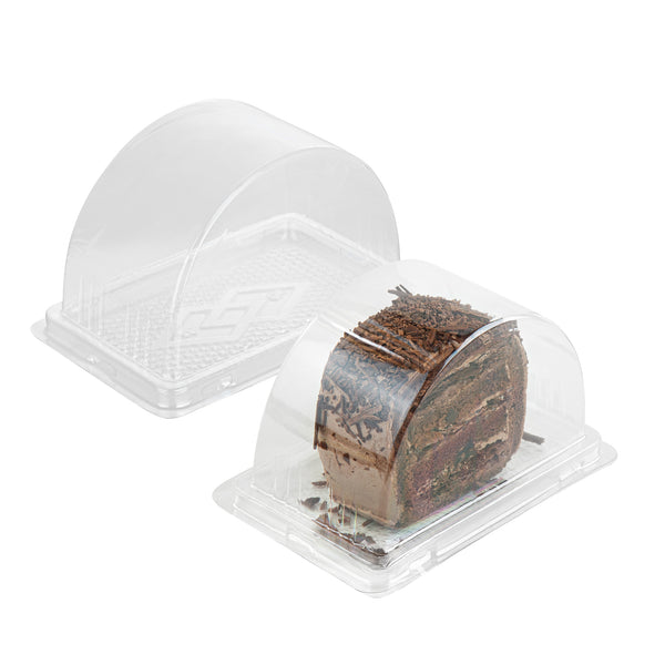 13 OZ SEMICIRCLE CLEAR PLASTIC SWISS ROLL CAKE BOX - WITH LID