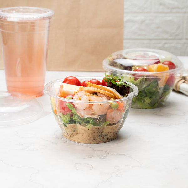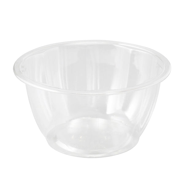 Serve up family-sized salads in our Thermo Tek 16-ounce Clear Plastic Ergo Grip Bowl. Great for restaurants, cafes, and other foodservice establishments, these disposable bowls are made from premium plastic and are conveniently recyclable for an eco-friendly clean up after use. Pair these plastic bowls with our coordinating clear lids (SKU: RWP0587C) to safely deliver fresh meals to customers. These salad bowls are crack-resistant and leak-resistant to prevent messes and spills while on the go. Great for serving dishes at catering events, these plastic bowls are safe for foods. These disposable bowls have a wide base that easily holds a hefty amount of food. Featuring a clear finish, these salad bowls provide full visibility for guests while enhancing food presentation. Perfect for saving storage in your commercial kitchen, these plastic bowls are stackable. Measuring 4.75 inches in diameter by 2.5 inches in height, these disposable bowls hold up to 16 ounces. Shipped in a 500 count box. Lids are available and sold separately.