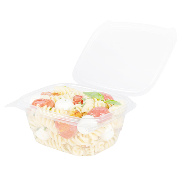 16 OZ PLASTIC DELI / SNACK CONTAINER - WITH HINGED LID, ANTI-FOG