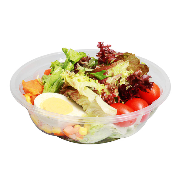 Use our Thermo Tek 24-ounce Clear Plastic Ergo-Grip Bowls to neatly package foods. Made from high-quality plastic, these bowls feature a strong base and sturdy walls to contain hefty meals without bending or breaking. With a clear finish, these 24-ounce bowls expertly display the vibrant colors of your salads or acai bowls to instantly capture the attention of patrons. Coordinate these clear plastic bowls with our clear flat lids (SKU: RWP0591C) to prevent food from falling out during transport. These round plastic salad bowls are recyclable, allowing employees to quickly clean tables in between seatings and dispose of bowls in an eco-friendly way. Containing up to 24 ounces, these stackable food bowls measure 6.75 inches in diameter by 2.25 inches in height. Shipped in a 50 count box. Clear lids are available and sold separately.