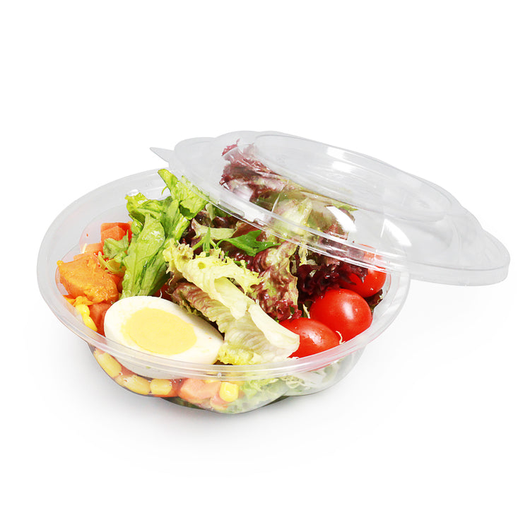 Use our Thermo Tek 24-ounce Clear Plastic Ergo-Grip Bowls to neatly package foods. Made from high-quality plastic, these bowls feature a strong base and sturdy walls to contain hefty meals without bending or breaking. With a clear finish, these 24-ounce bowls expertly display the vibrant colors of your salads or acai bowls to instantly capture the attention of patrons. Coordinate these clear plastic bowls with our clear flat lids (SKU: RWP0591C) to prevent food from falling out during transport. These round plastic salad bowls are recyclable, allowing employees to quickly clean tables in between seatings and dispose of bowls in an eco-friendly way. Containing up to 24 ounces, these stackable food bowls measure 6.75 inches in diameter by 2.25 inches in height. Shipped in a 500 count box. Clear lids are available and sold separately.