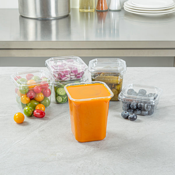Ensure fresh and spill-free meal deliveries with our Thermo Tek Grease-Resistant Clear Deli Container. Designed with a grease-resistant and leak-resistant construction, this clear deli container keeps food fresh longer by preventing unsightly messes and maintaining customer satisfaction. Its transparent design allows easy identification of contents, making it a valuable asset in fast-paced kitchen environments. Made from durable PET plastic, this disposable food container supports eco-conscious dining establishments. With its freezer-safe feature, it is ideal for meal prep storage, ensuring your pre-packaged salads and snacks remain in optimal condition. Measuring 4.53 inches in length and width and 5.31 inches in height, it offers ample storage with a 32-ounce capacity for delis and sandwich shops. Experience the practicality and reliability of our plastic container with lid to streamline your operations. Each order includes 100 Thermo Tek Grease-Resistant Clear Deli Containers.
