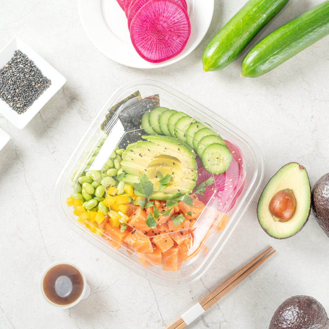 34 OZ SQUARE PLASTIC SALAD BOWL - WITH LID, ANTI-FOG