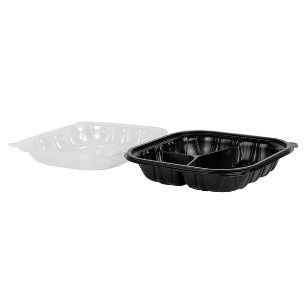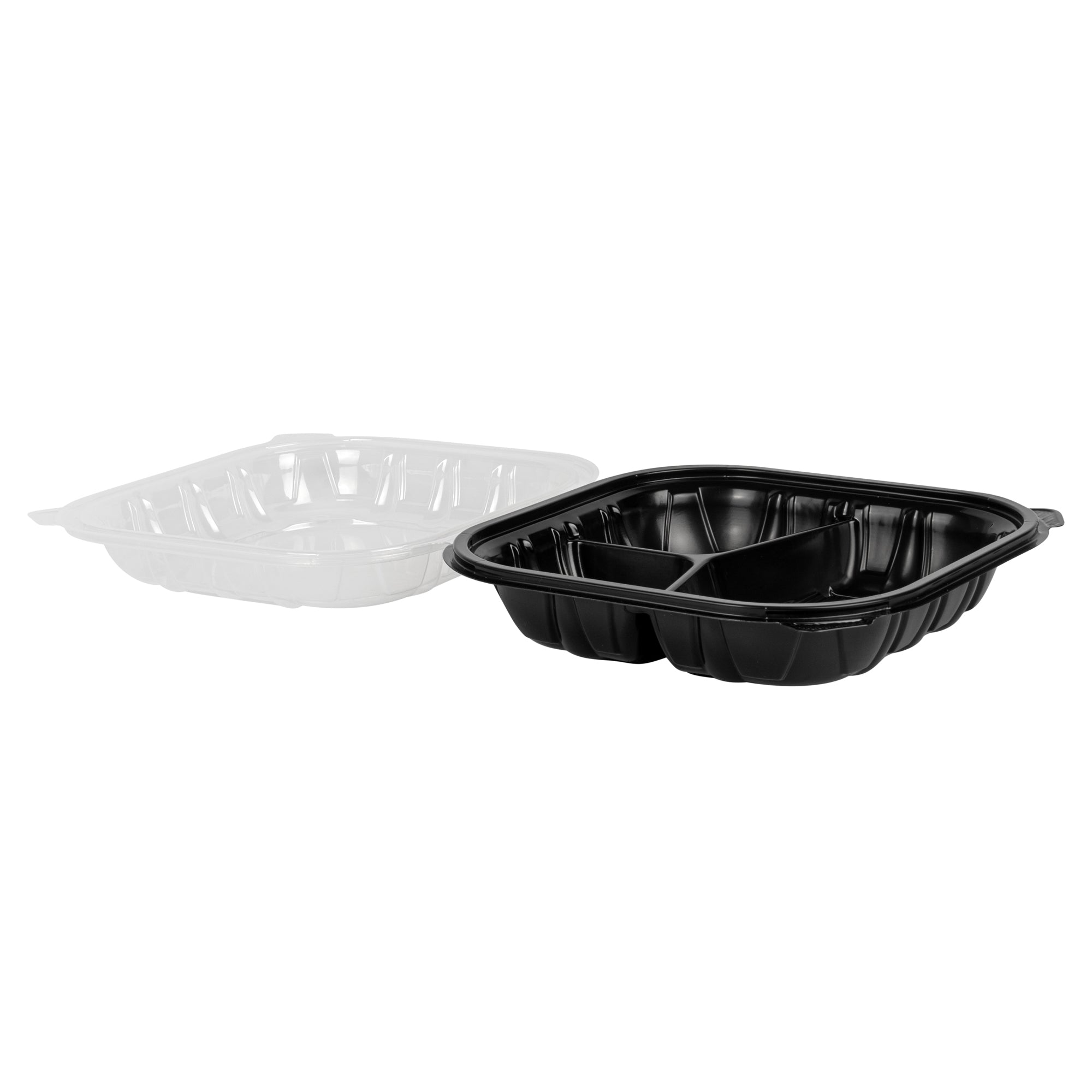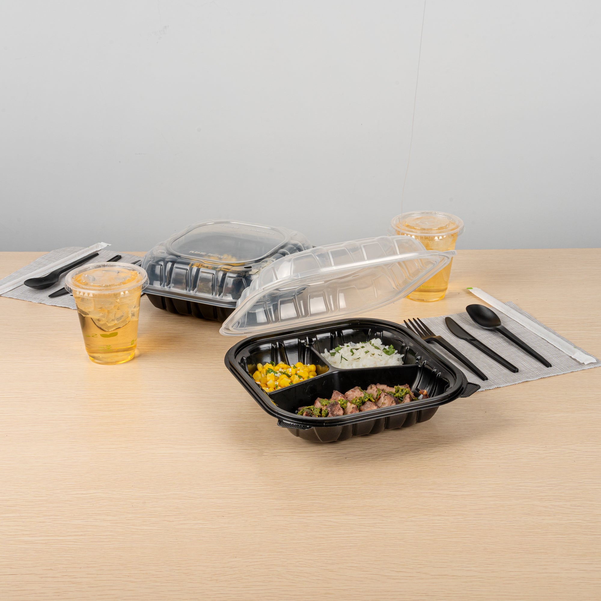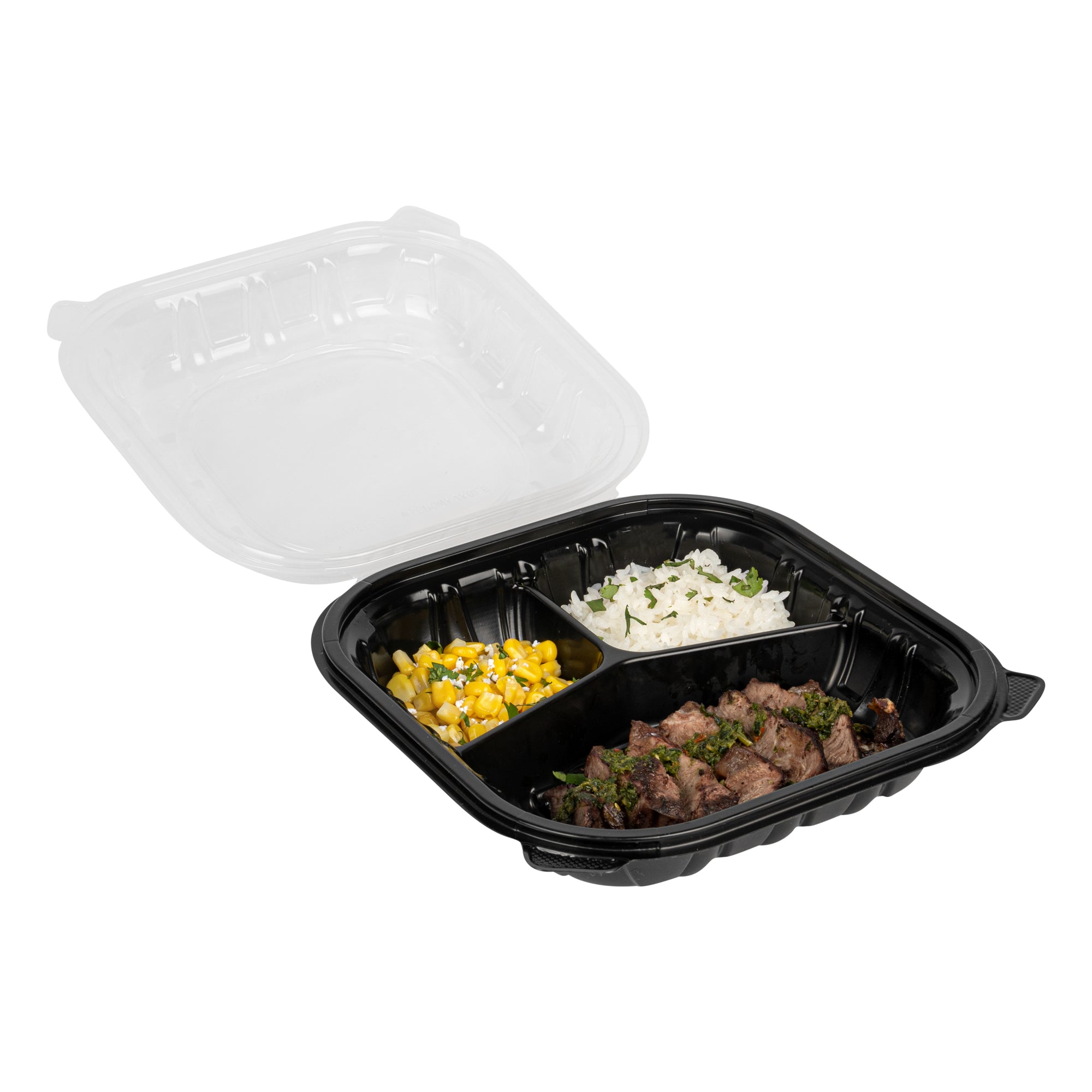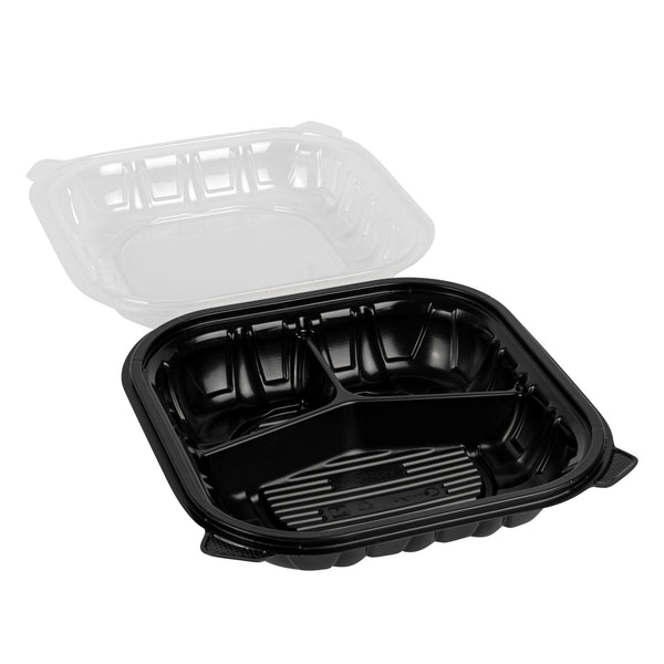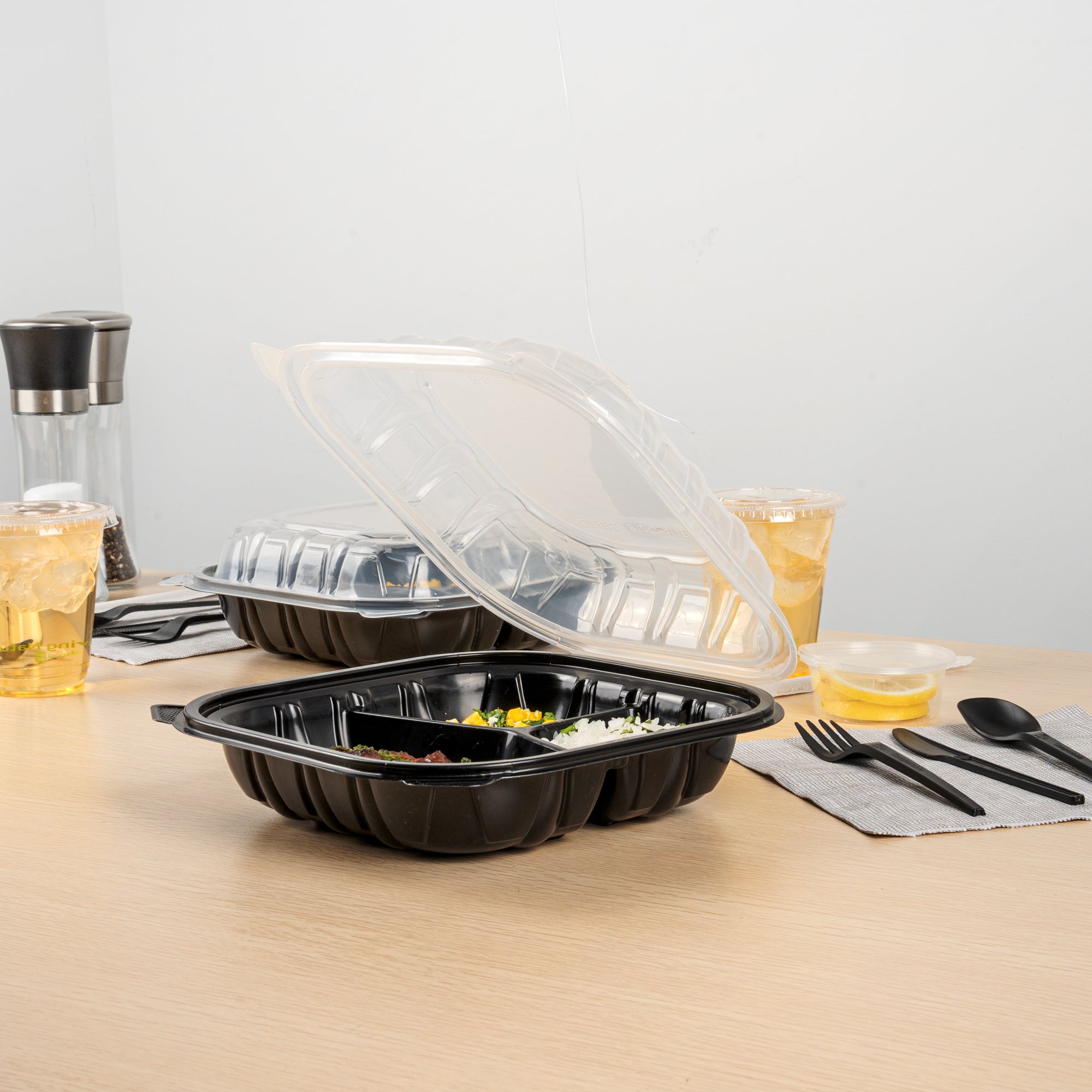 40 OZ BLACK PLASTIC CLAMSHELL CONTAINER - 3 COMPARTMENTS