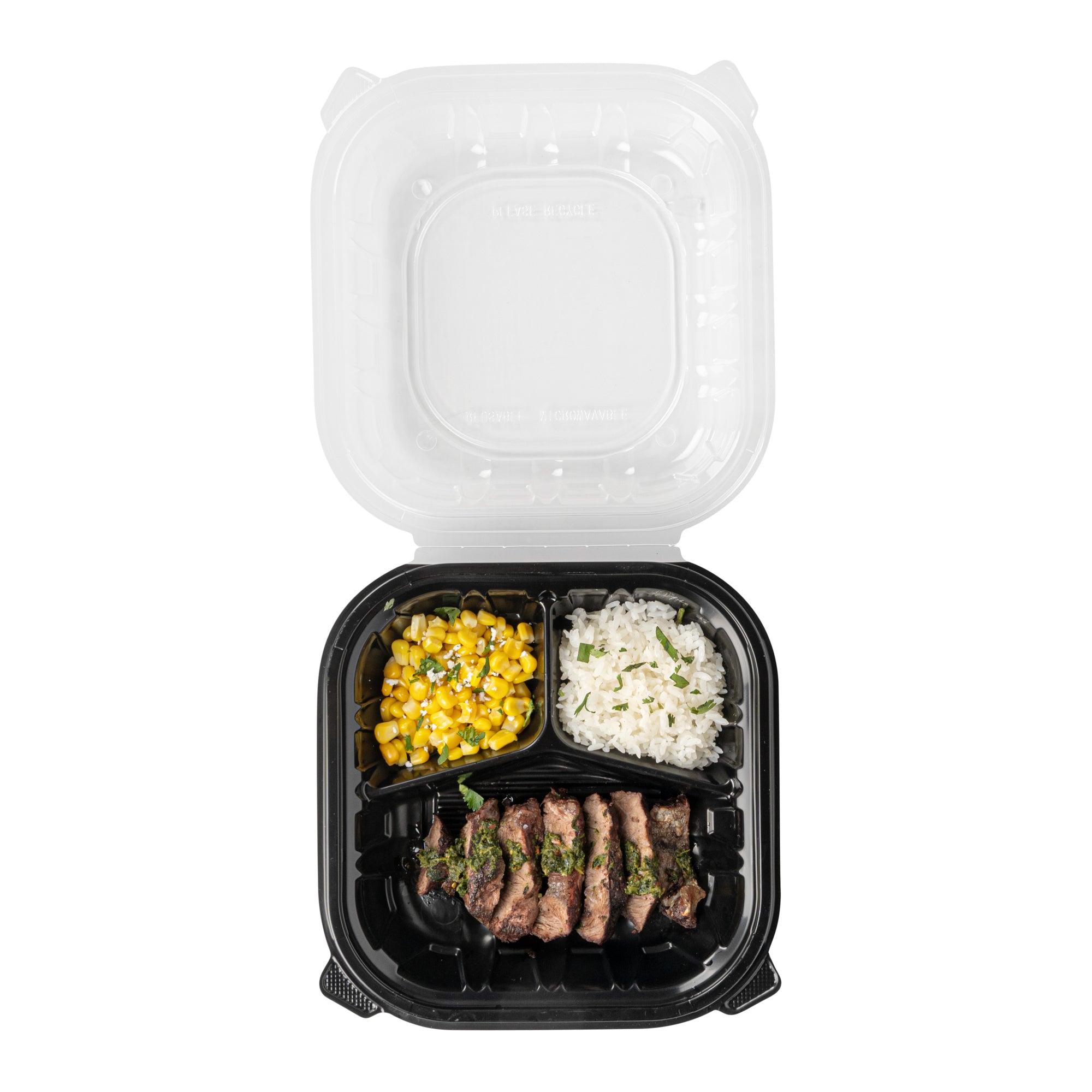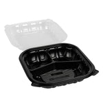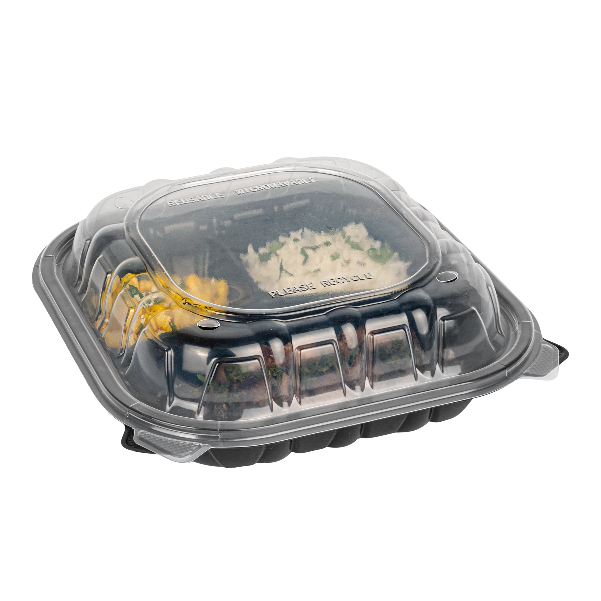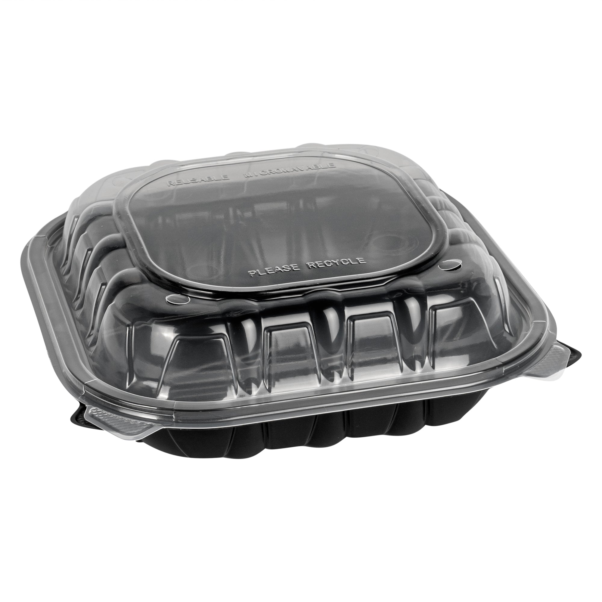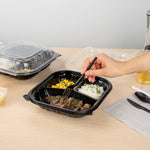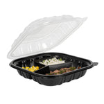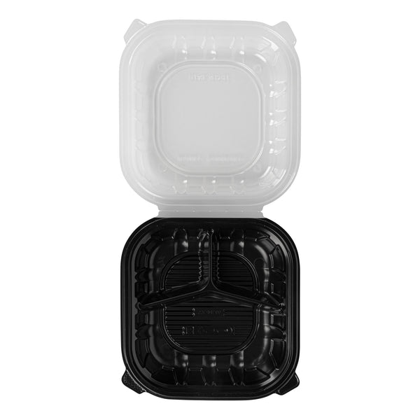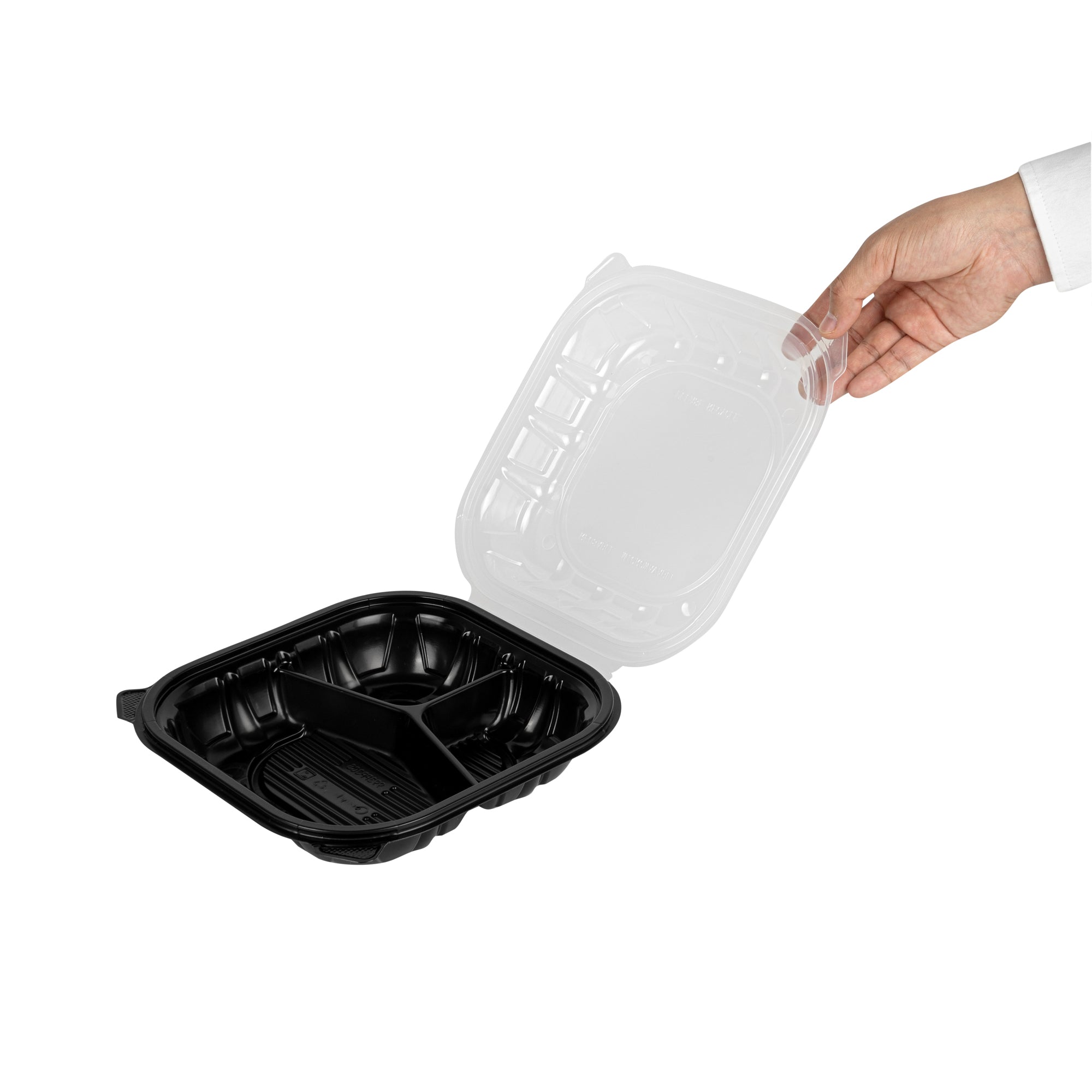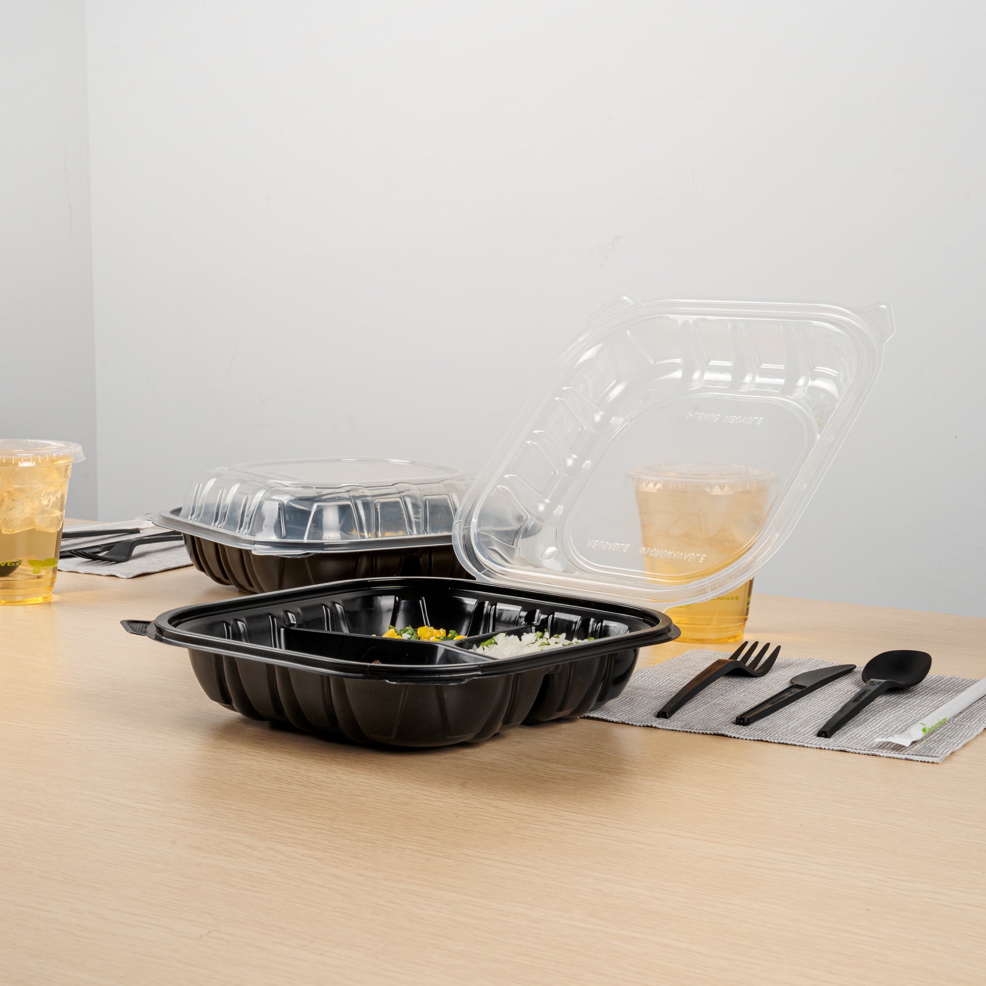 40 OZ BLACK PLASTIC CLAMSHELL CONTAINER - 3 COMPARTMENTS