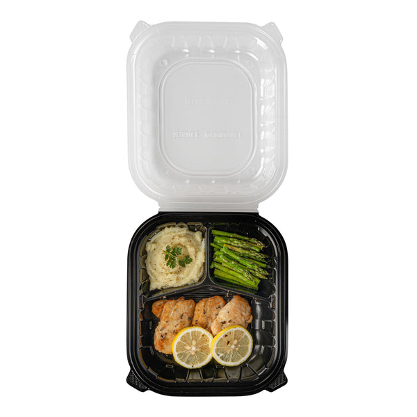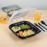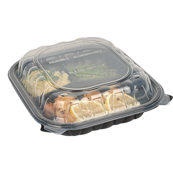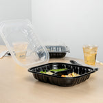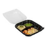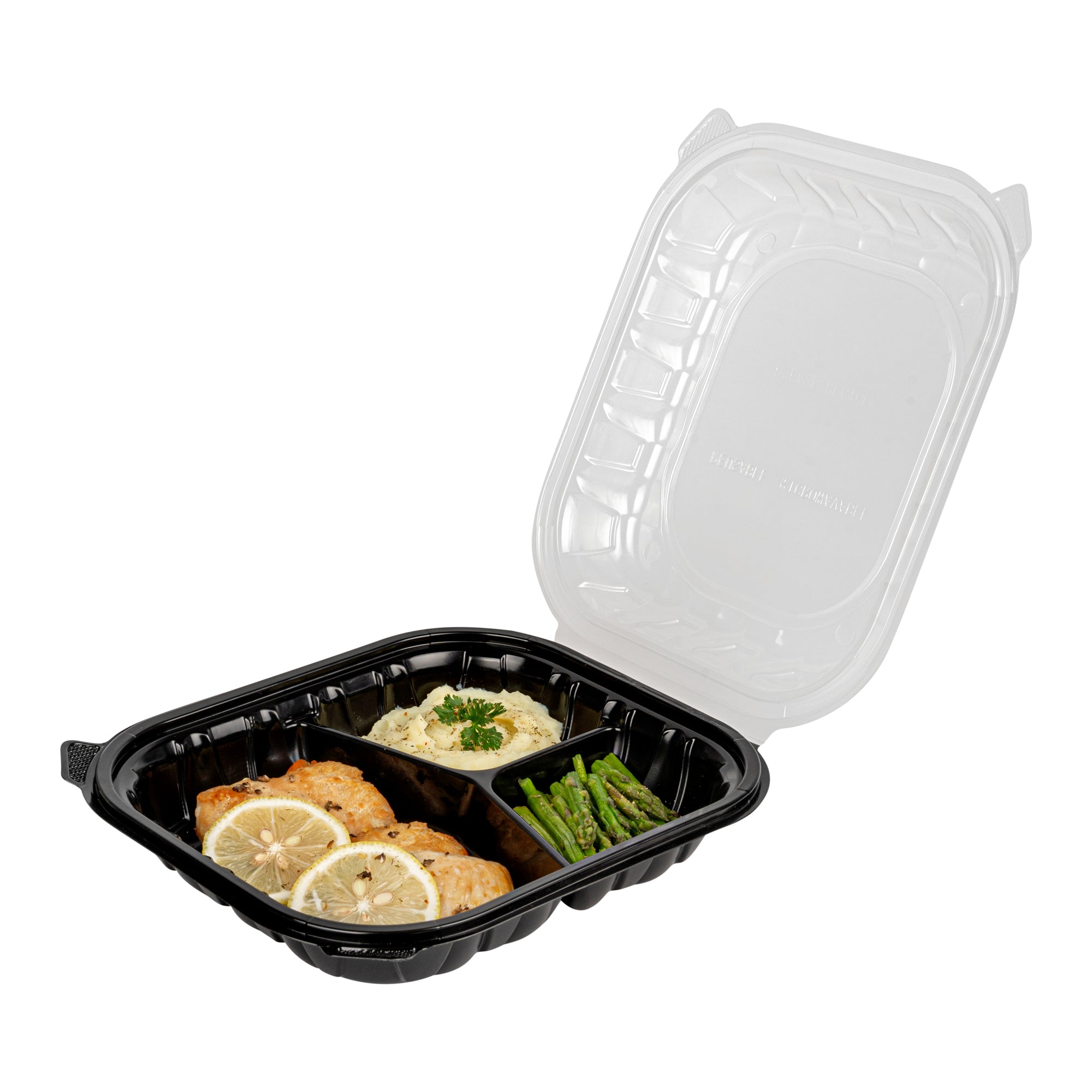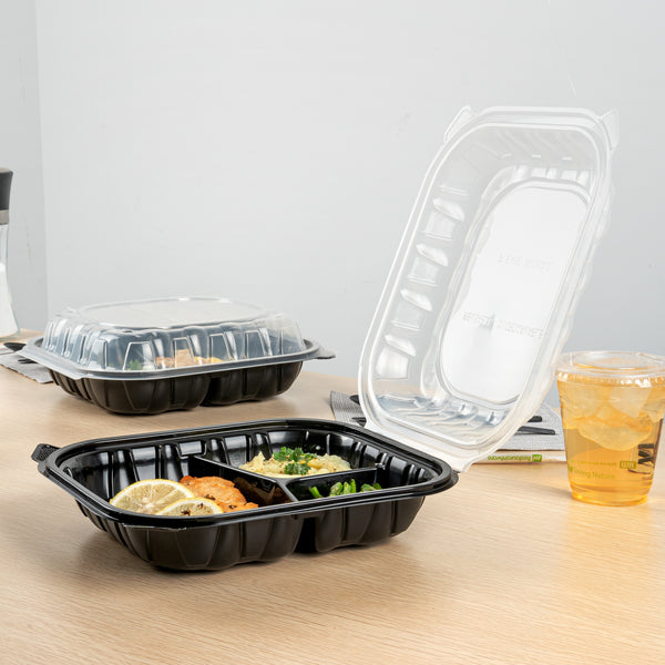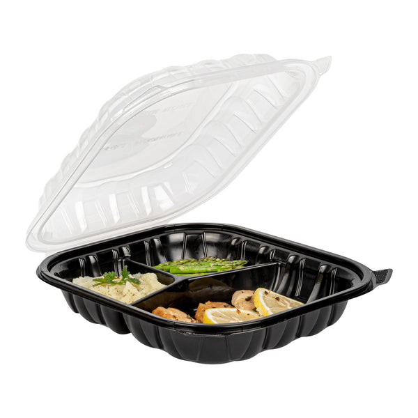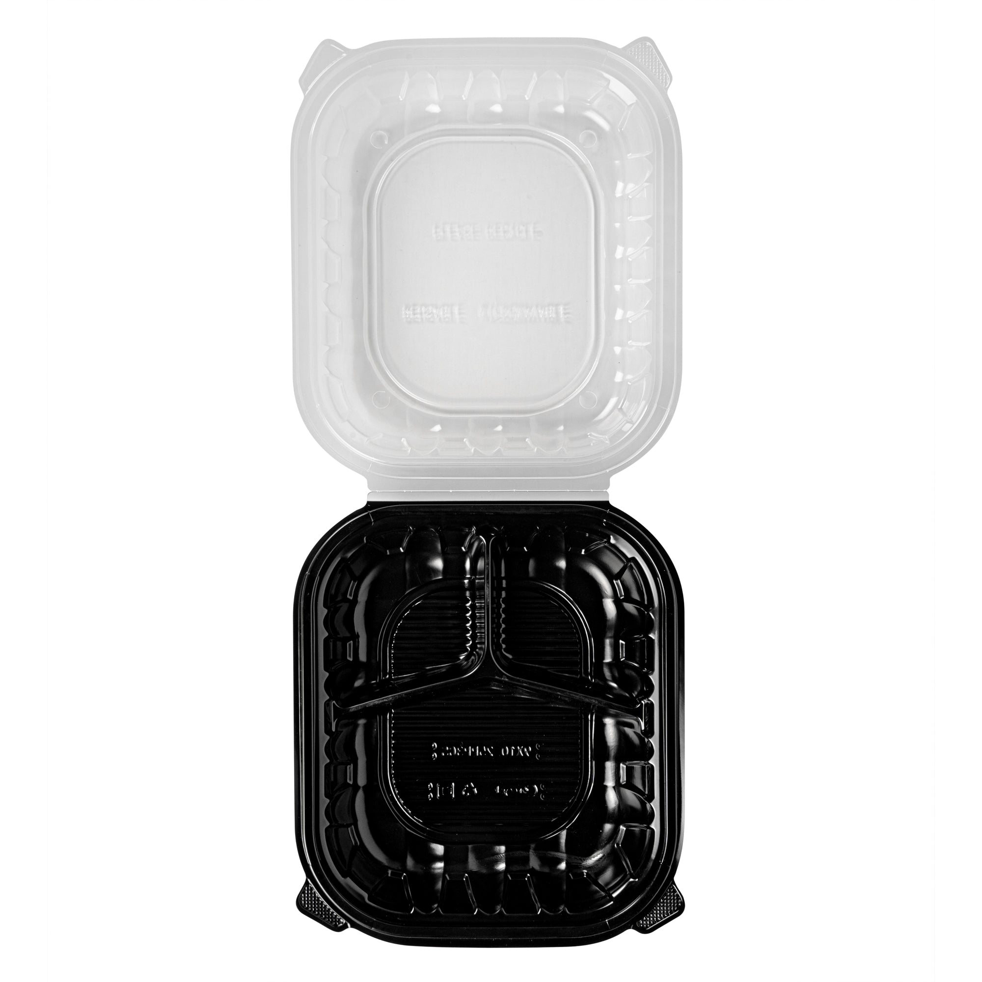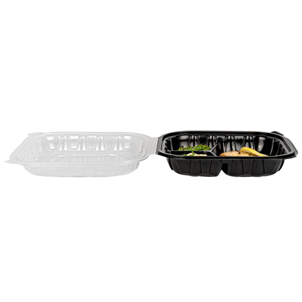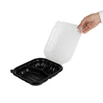 54 OZ BLACK PLASTIC CLAMSHELL CONTAINER - 3 COMPARTMENTS