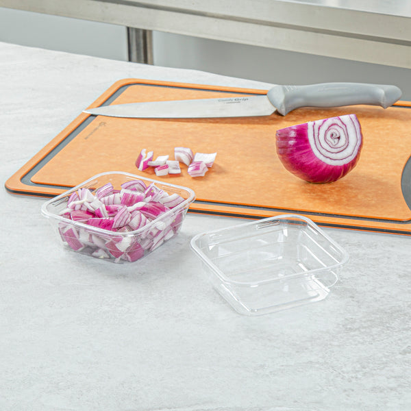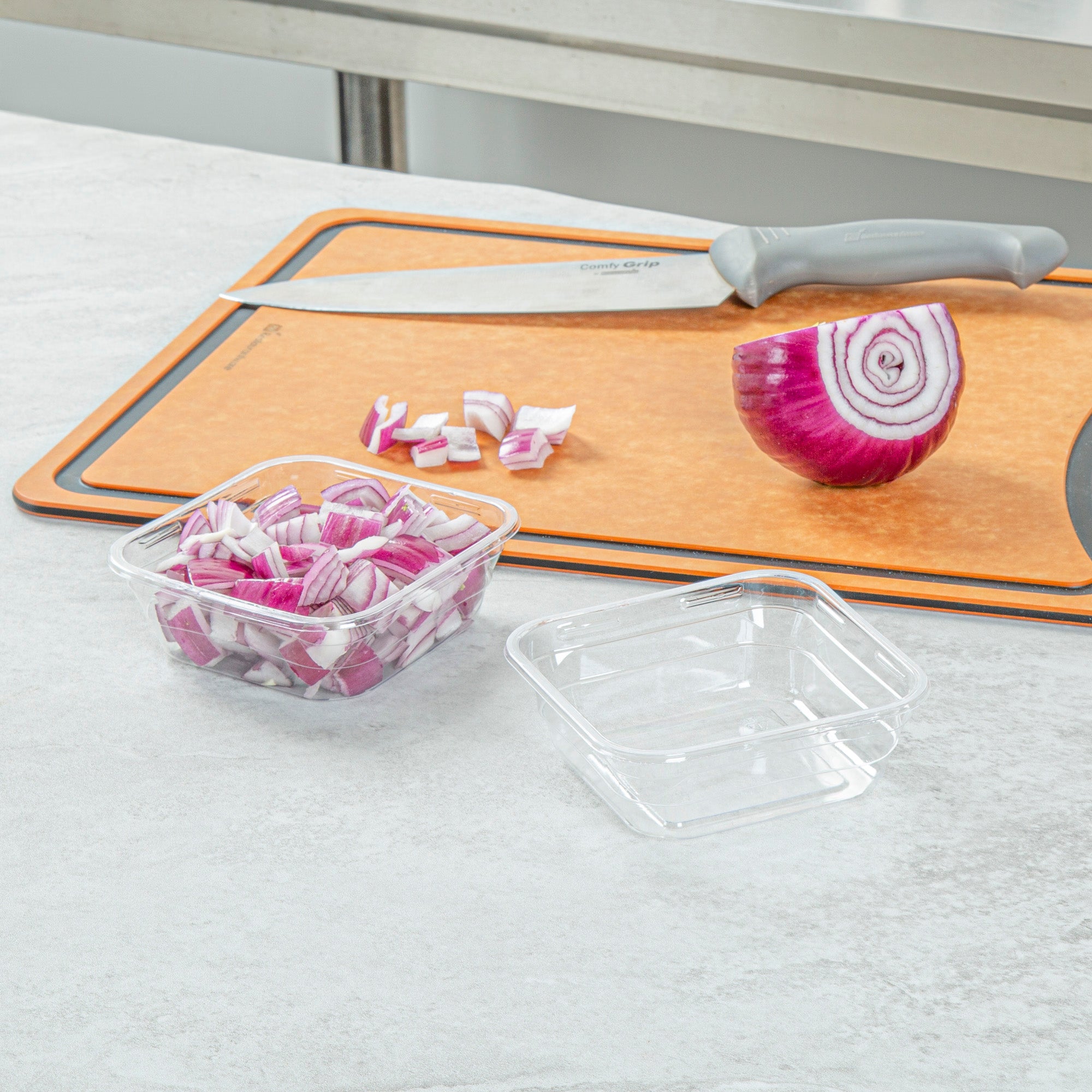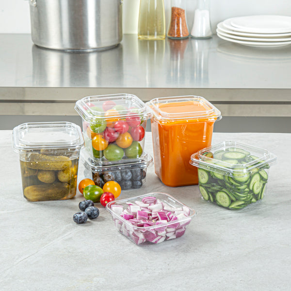 Ensure mess-free takeout with grease-resistant design. The Thermo Tek Leak-Resistant Plastic Food Container offers a reliable solution for cafes and catering services with its grease-resistant and leak-resistant construction, guaranteeing safe food transport. Made from clear plastic, this plastic deli container enhances visibility, allowing for quick identification of stored foods. Its freezer-safe design preserves the freshness of stored items, making it a dependable meal prep container for cold dishes. With dimensions of 4.5 inches by 4.5 inches by 1.5 inches, this square-shaped container maximizes storage efficiency, ideal for packaging snacks or side dishes. Elevate your foodservice operations by ensuring your meals stay fresh and appetizing with this essential plastic food container. Each order includes 50 Thermo Tek Leak-Resistant Plastic Food Containers.