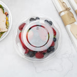 Expertly seal in meals using our Thermo Tek Clear Plastic Ergo-Grip Bowl Lids. These plastic bowl lids are recyclable and ideal for promoting a positive impact on the planet. These disposable lids can be coordinated with our matching clear plastic bowls (SKU: RWP0584C, RWP0585C, RWP0586C) to take salads, pasta, and other meals on the go. These plastic lids securely snap onto containers to create an airtight seal. To prevent messy accidents when containers are filled with foods, these plastic bowl lids are crack-resistant and leak-resistant. These disposable lids have a clear finish to provide expert visibility of your customers' meals. Measuring 4.9 inches in diameter by 0.9 inches in height, these plastic lids are sold in a 500 count box. Bowls are available and sold separately.