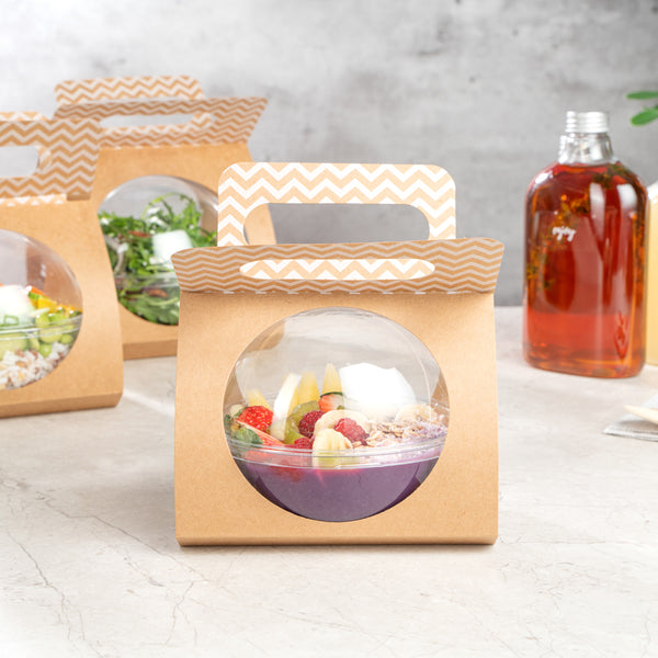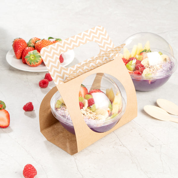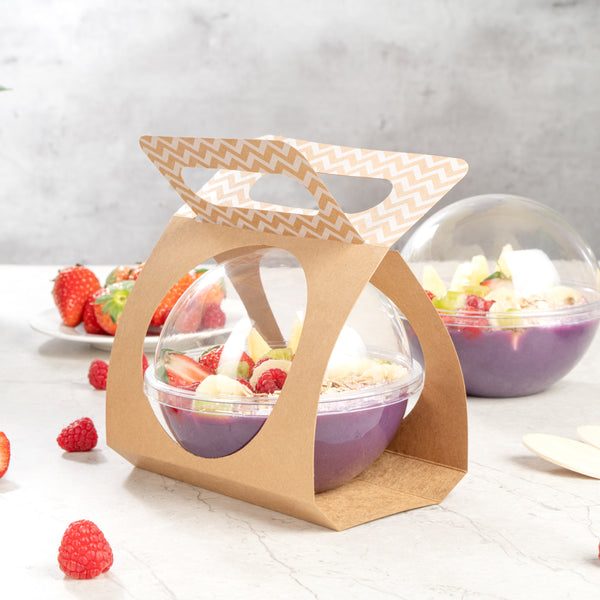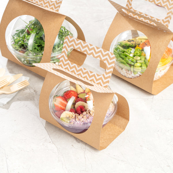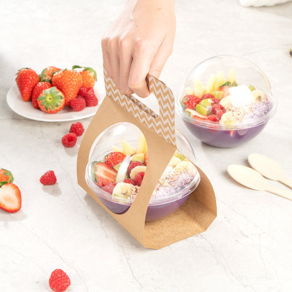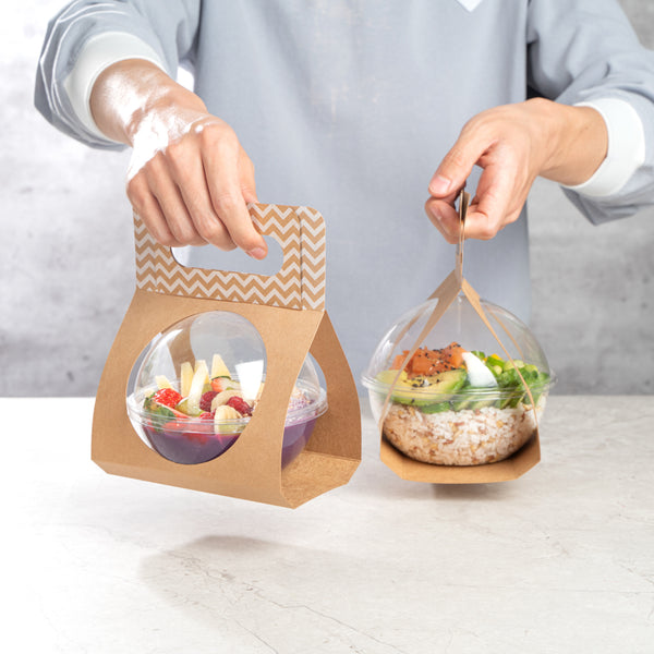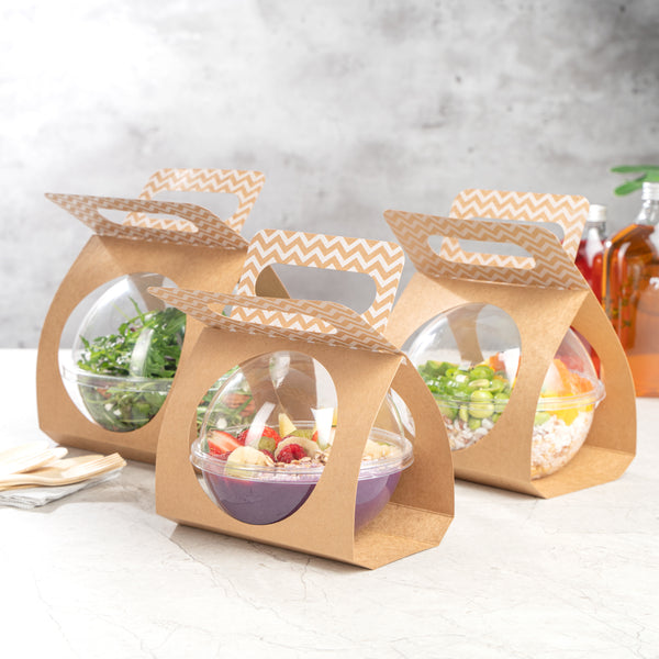 KRAFT PAPER SPHERE SALAD CONTAINER CARRIER - FITS 12 OZ