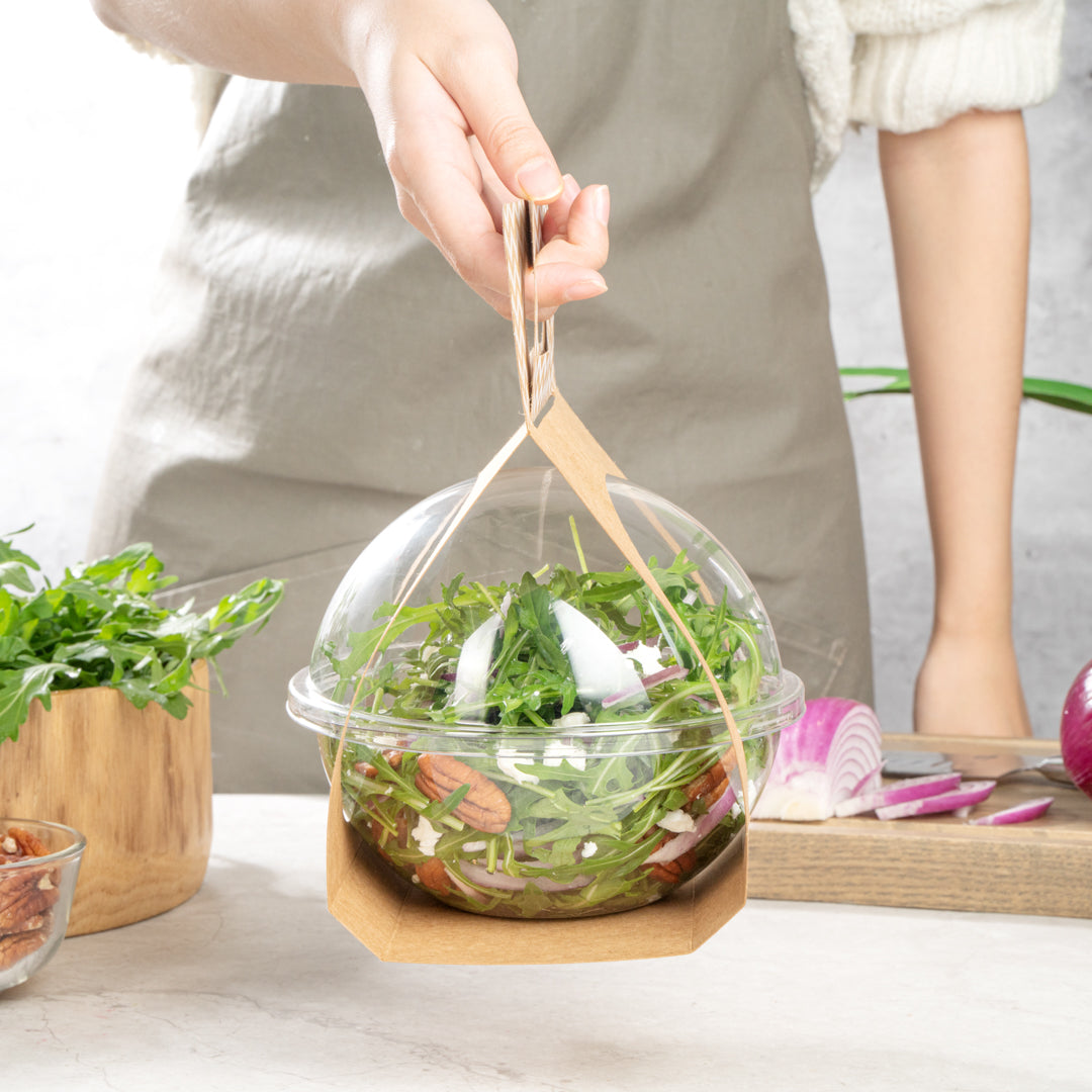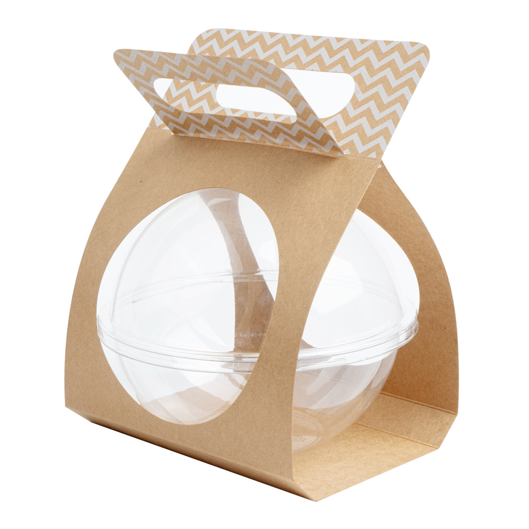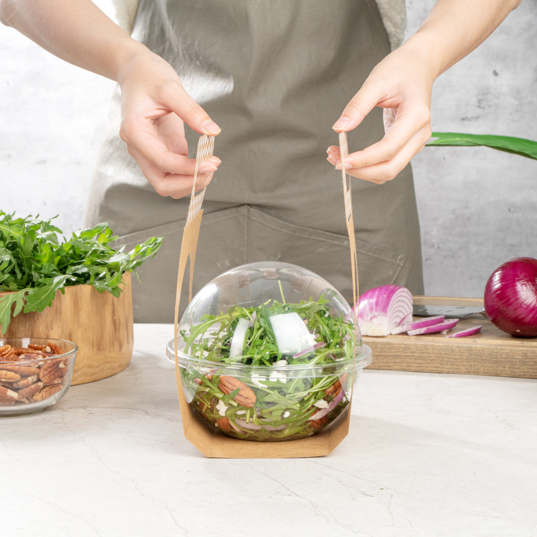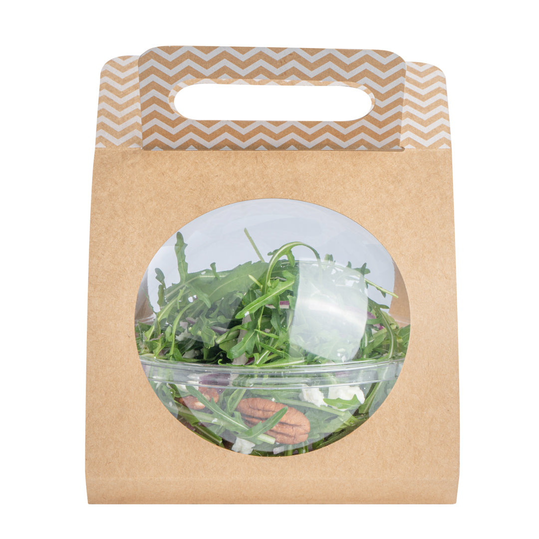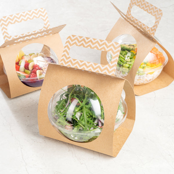 KRAFT PAPER SPHERE SALAD CONTAINER CARRIER - FITS 28 OZ