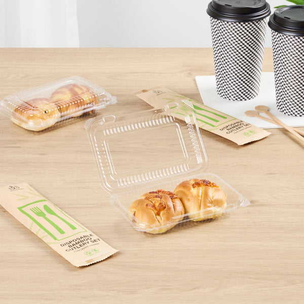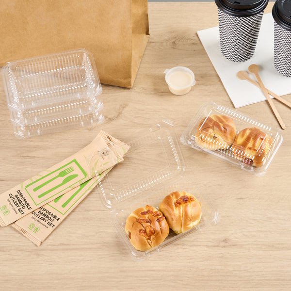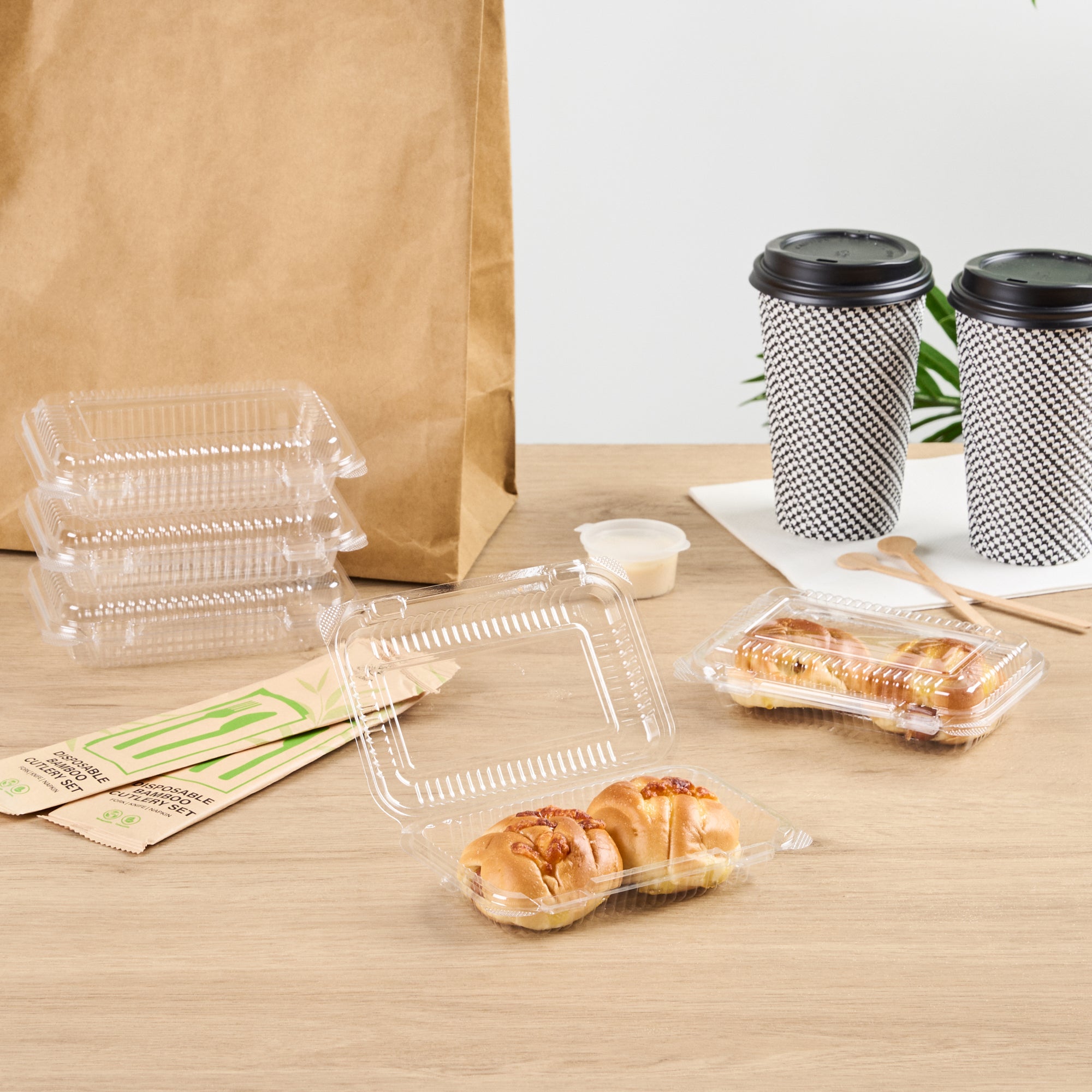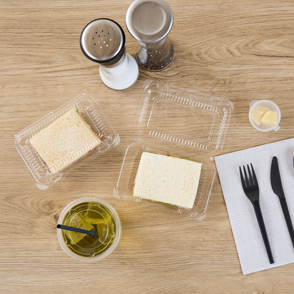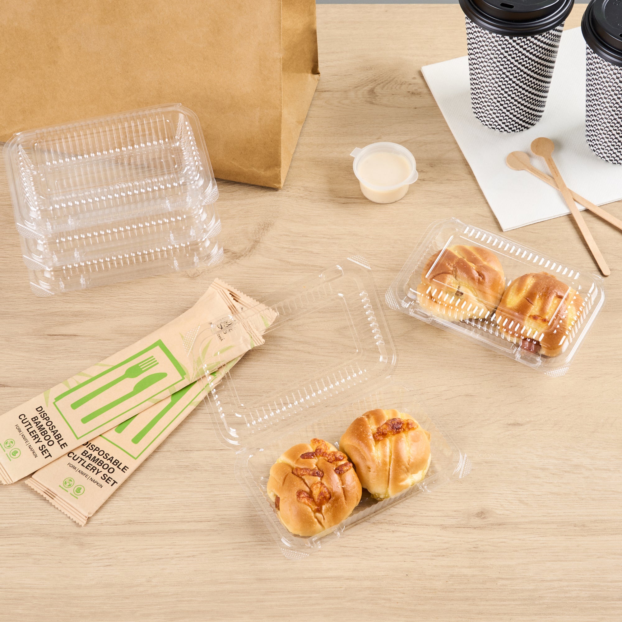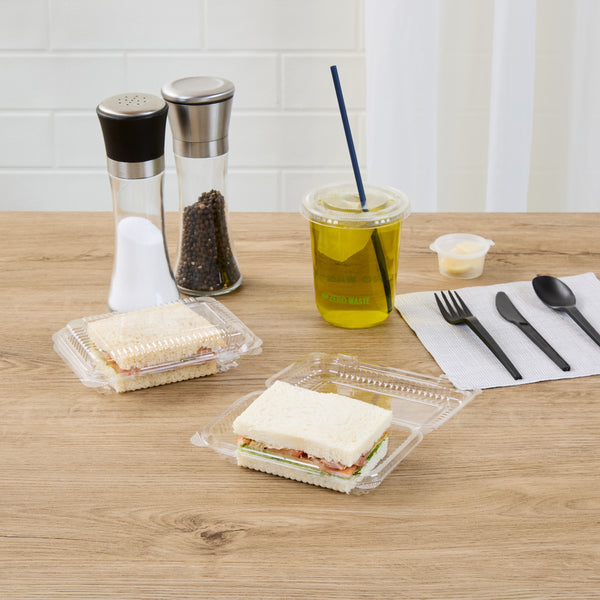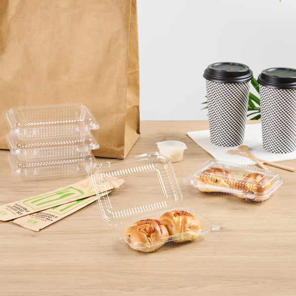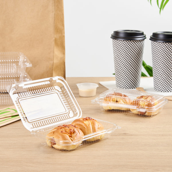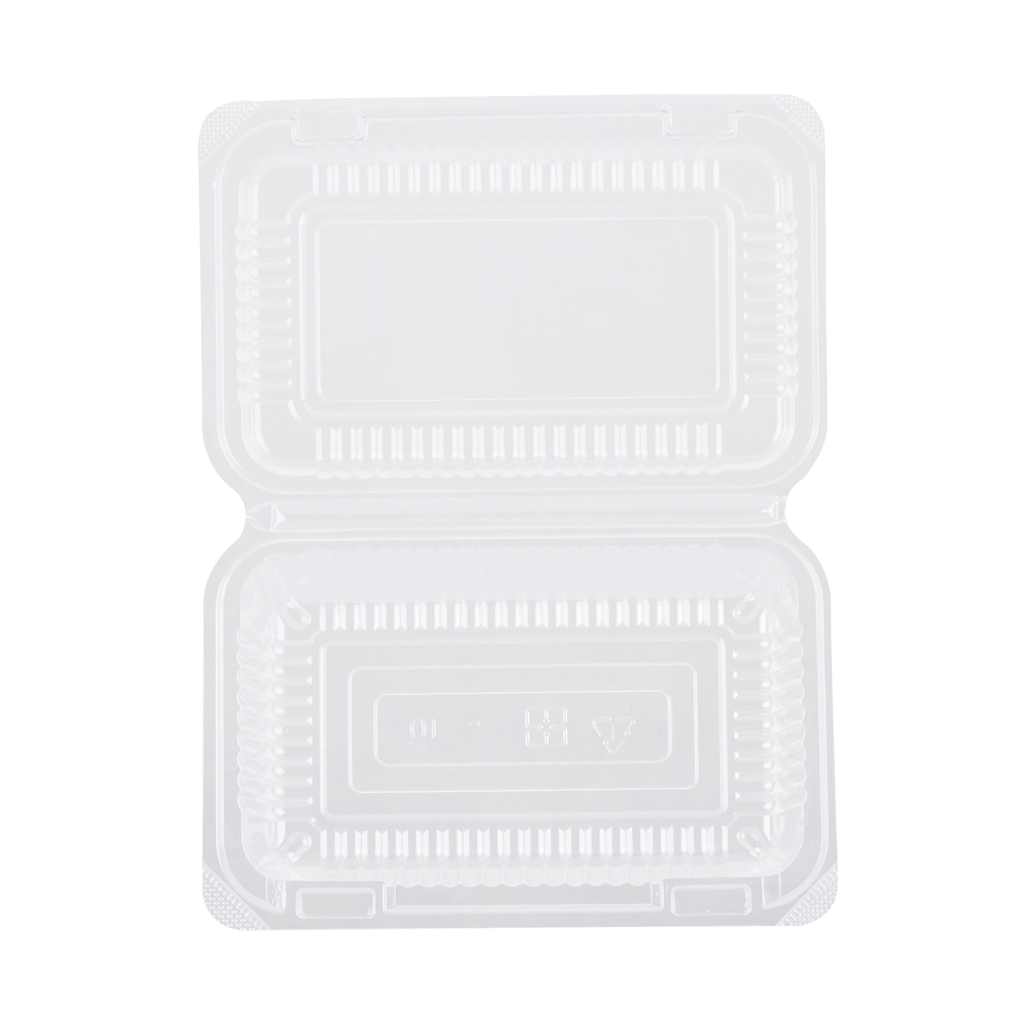 Ensure fresh and mess-free meal deliveries with our Thermo Tek Plastic Takeout Container. This clamshell food container is expertly designed with a grease-resistant and leak-resistant seal, ensuring that your meal presentations remain impeccable during transport. The clear construction of this container allows for easy identification of contents, making it an ideal choice for busy delis and sandwich shops needing a reliable clamshell food container. Its freezer-safe design supports long-term storage, ensuring versatile use for caterers and foodservice professionals who need to maintain the quality of pre-packaged meals. Made from plastic, this container is cold food friendly, making it perfect for serving salads and desserts while promoting sustainable practices in your establishment. Enhance your operations with dependable clear food packaging box solutions for efficient service. Each order includes 100 Thermo Tek Plastic Takeout Containers.