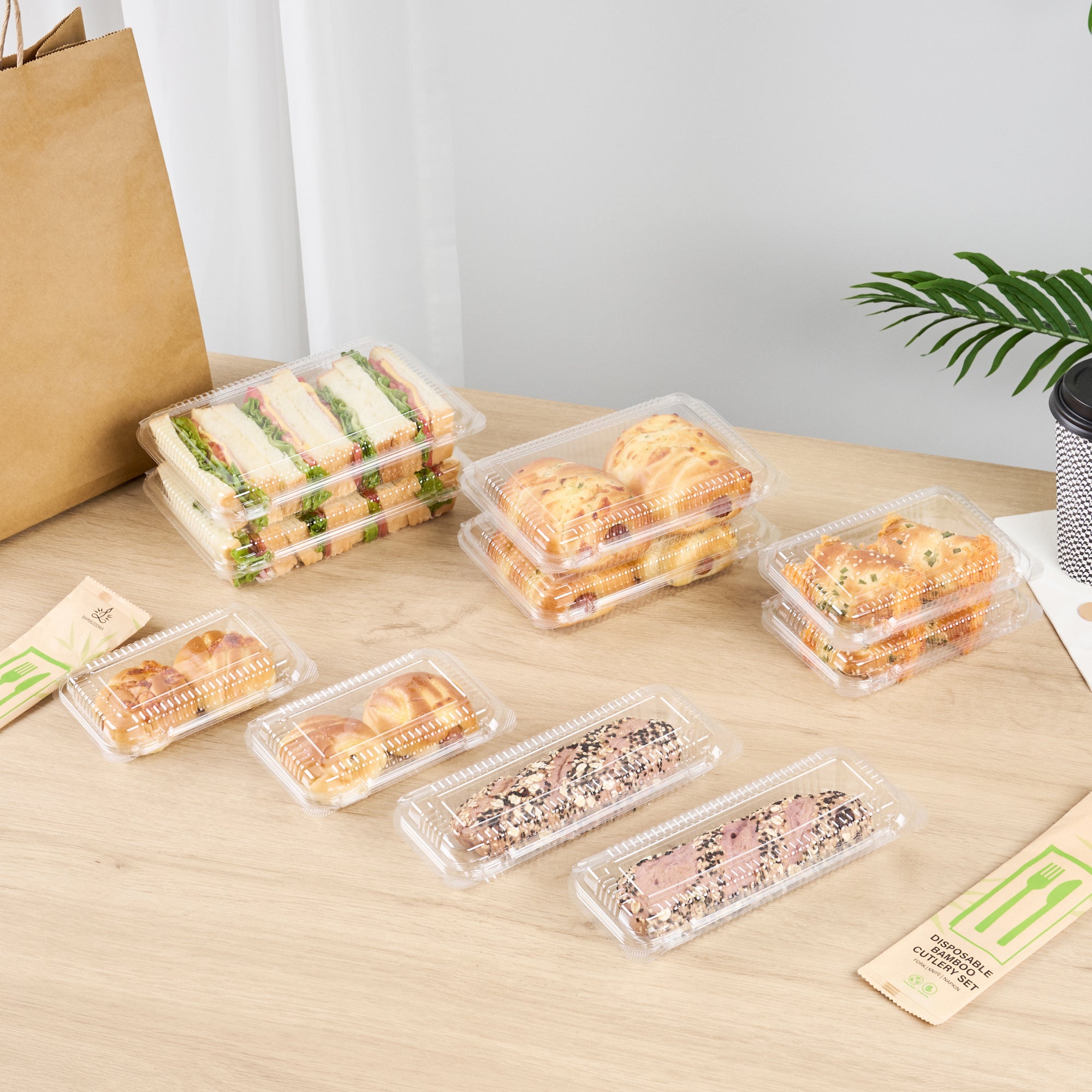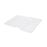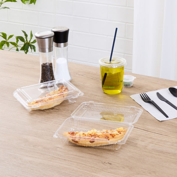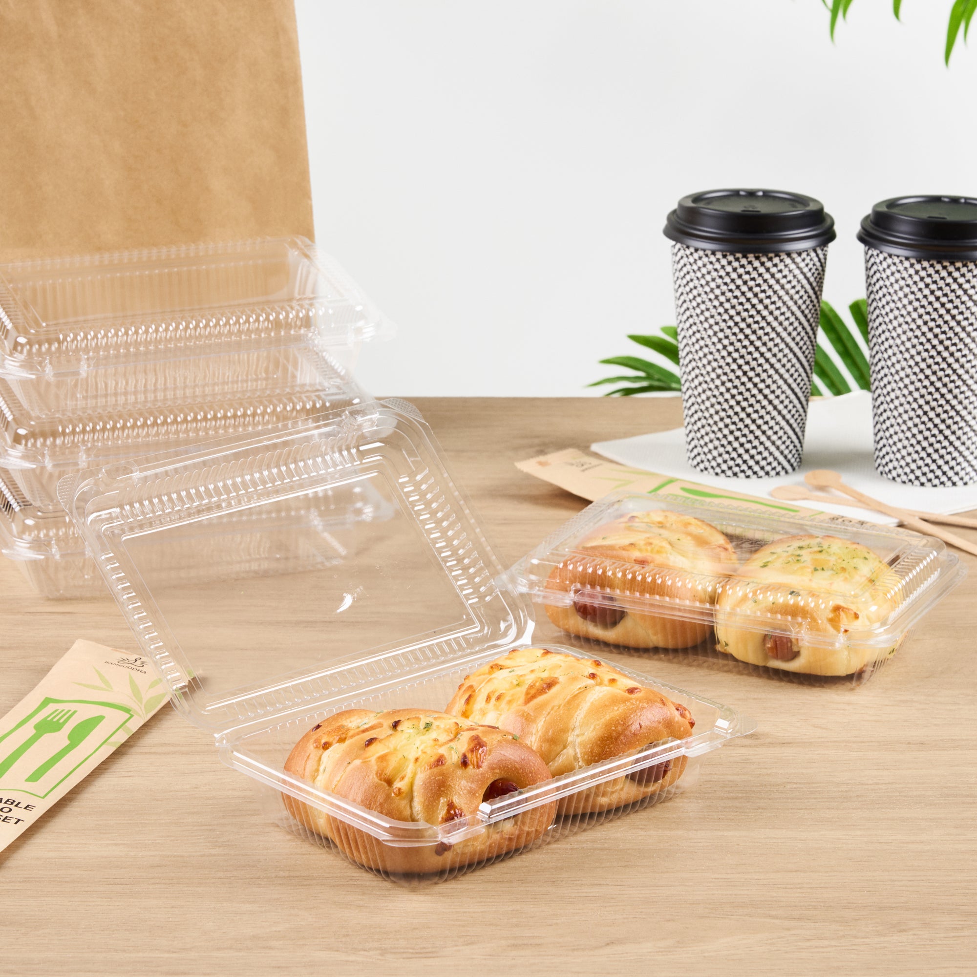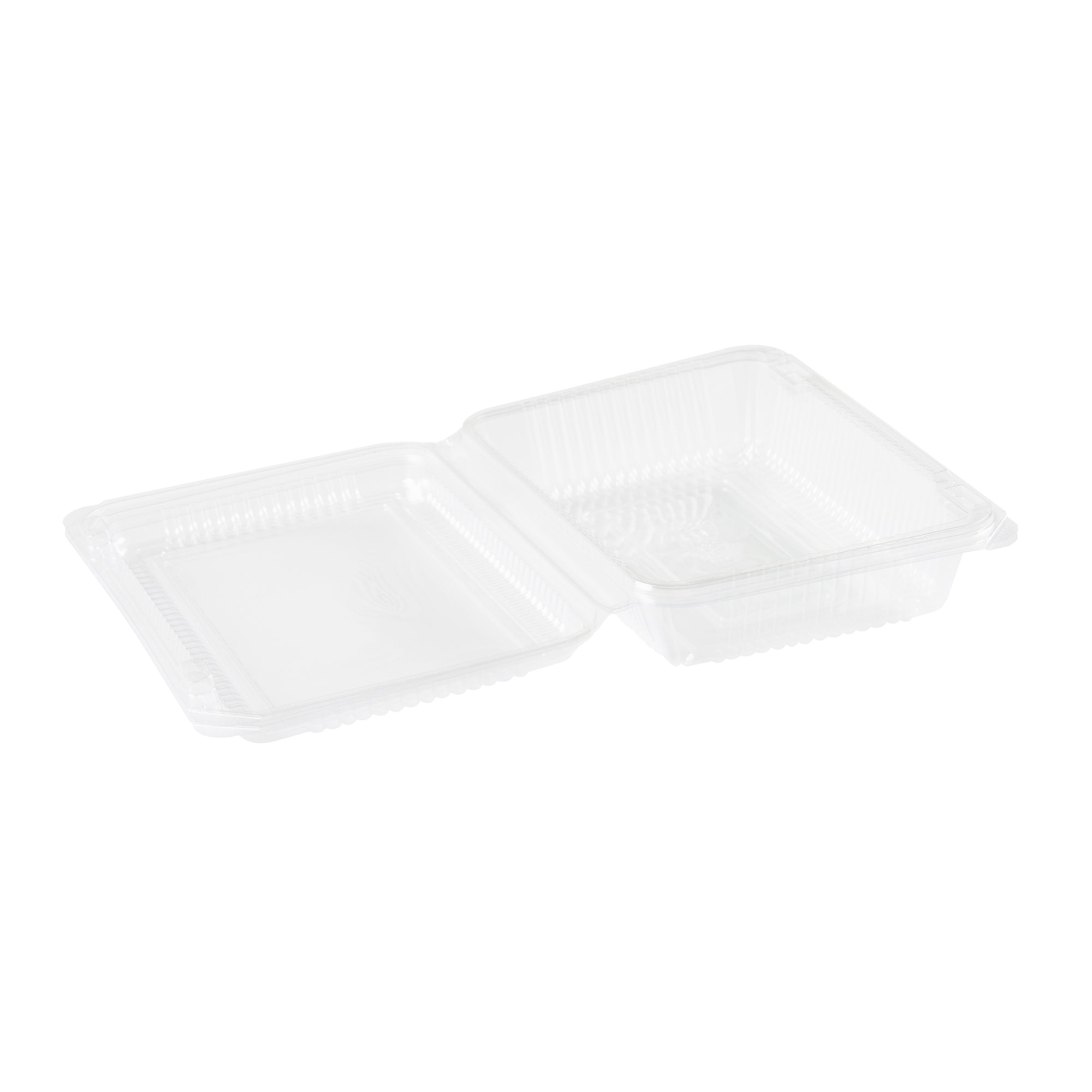 Maintain freshness effortlessly with this plastic takeout container. The Thermo Tek Grease-Resistant Plastic Takeout Container features a robust, grease-resistant, and leak-resistant design to keep meals fresh and intact during transport. This rectangular plastic food container, measuring 7.5 inches in length and 5.25 inches in width, provides ample space for sandwiches, wraps, or pastries, making it essential for delis and bakeries. The freezer-safe capability of this sandwich clamshell container ensures it withstands cold storage without compromising its integrity, ideal for meal prep and long-term storage. Its clear construction allows for quick inventory checks, streamlining operations in fast-paced environments. Experience the reliability and efficiency of our food packaging solutions today. Each order includes 100 Thermo Tek Grease-Resistant Plastic Takeout Containers.