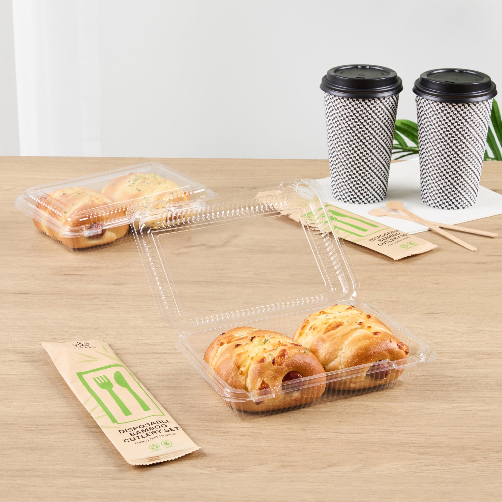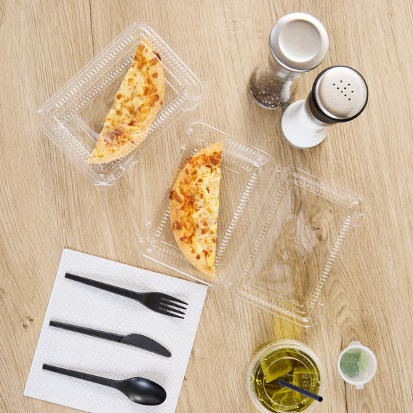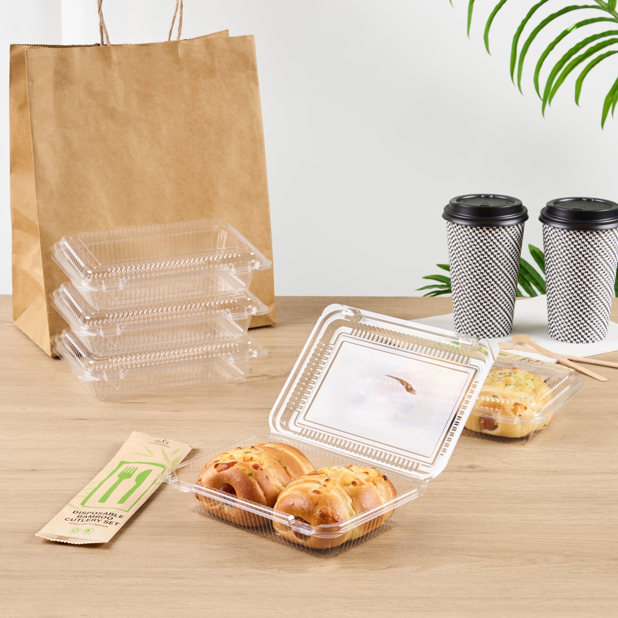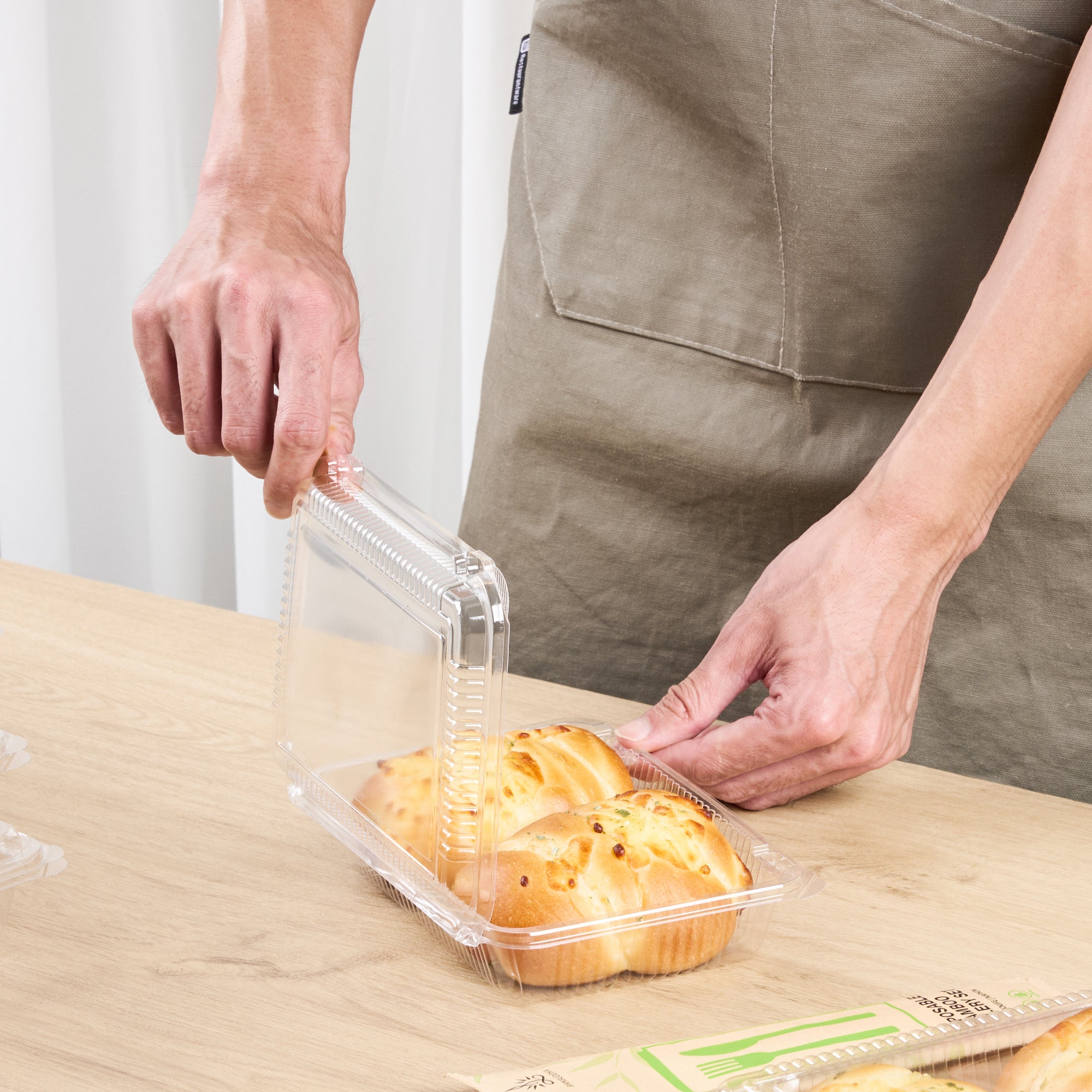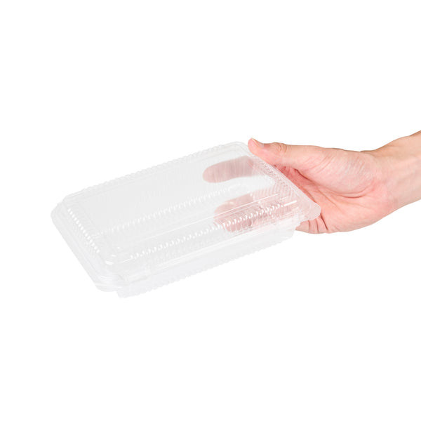 Maintain freshness effortlessly with this plastic takeout container. The Thermo Tek Grease-Resistant Plastic Takeout Container features a robust, grease-resistant, and leak-resistant design to keep meals fresh and intact during transport. This rectangular plastic food container, measuring 7.5 inches in length and 5.25 inches in width, provides ample space for sandwiches, wraps, or pastries, making it essential for delis and bakeries. The freezer-safe capability of this sandwich clamshell container ensures it withstands cold storage without compromising its integrity, ideal for meal prep and long-term storage. Its clear construction allows for quick inventory checks, streamlining operations in fast-paced environments. Experience the reliability and efficiency of our food packaging solutions today. Each order includes 100 Thermo Tek Grease-Resistant Plastic Takeout Containers.