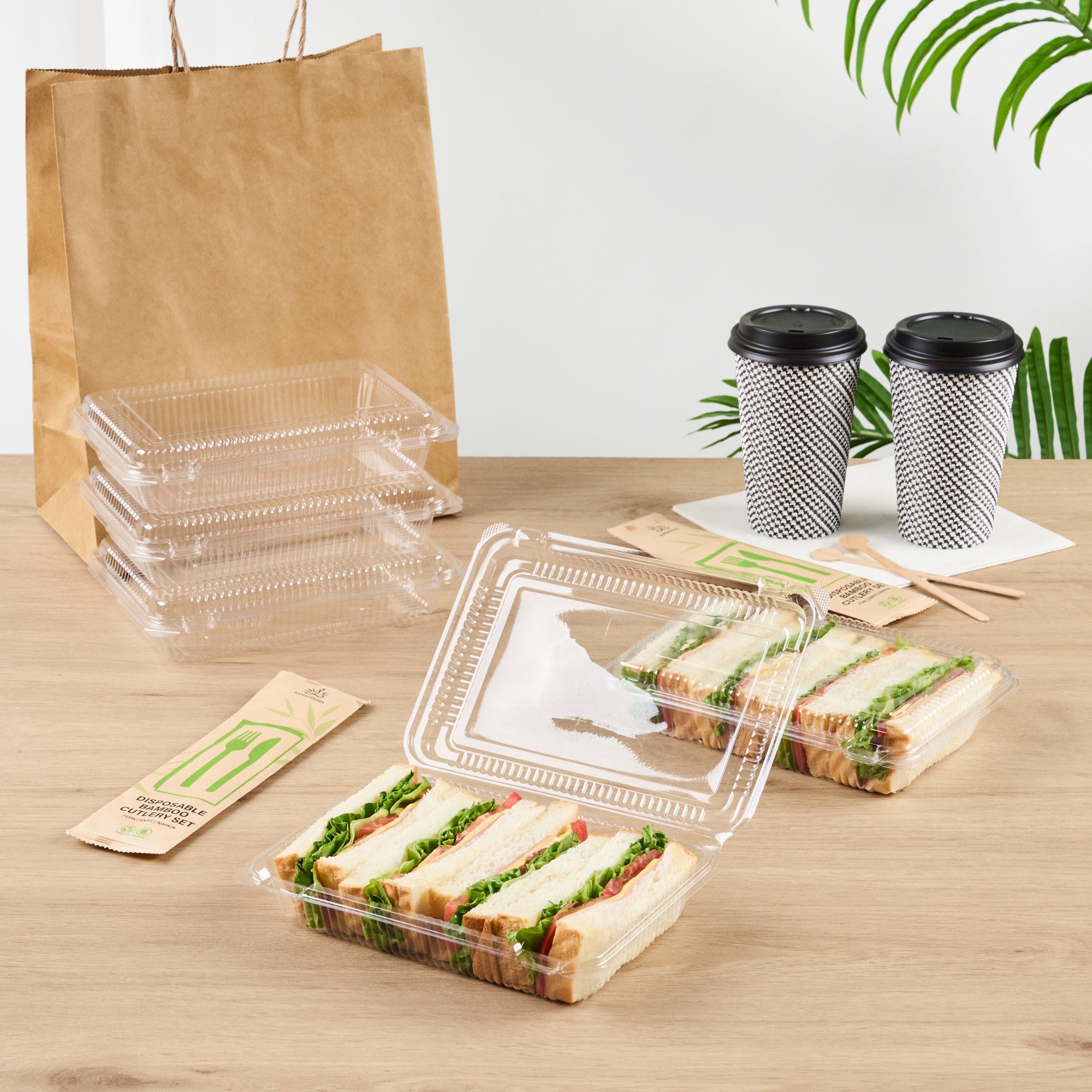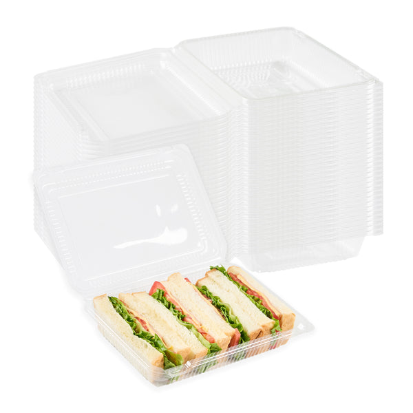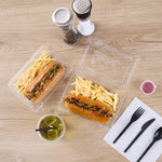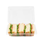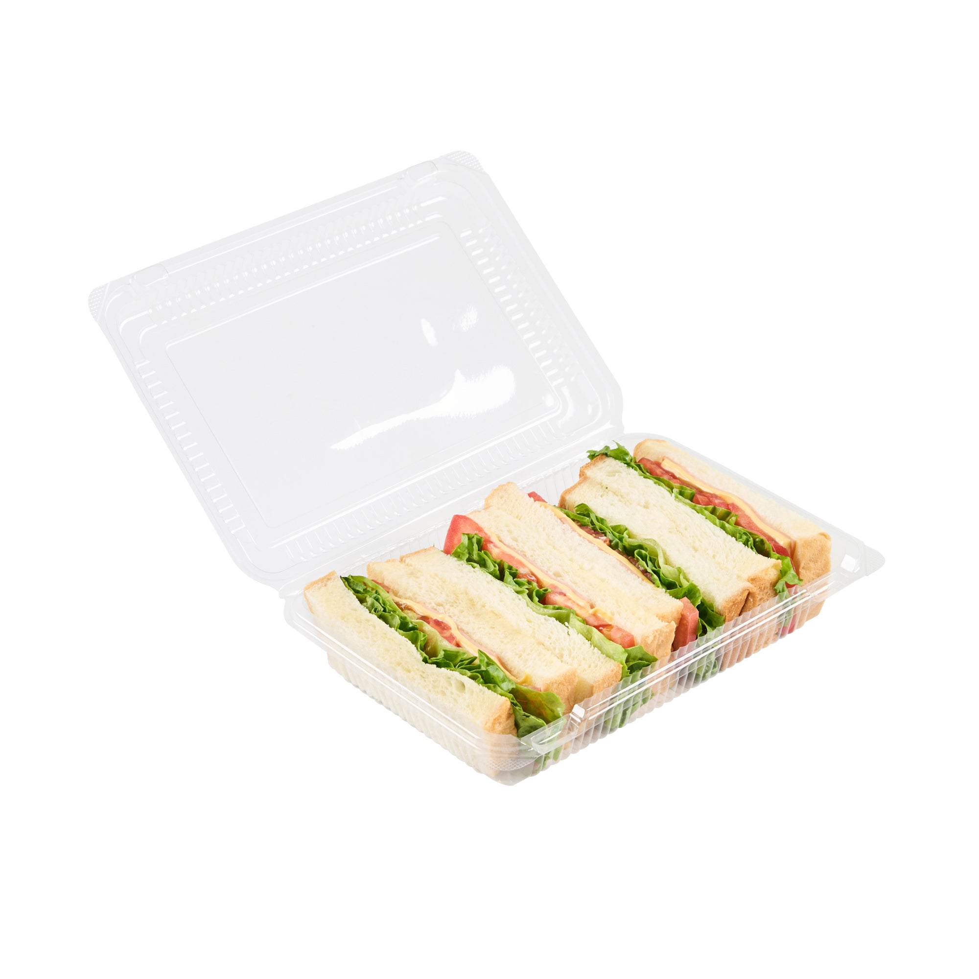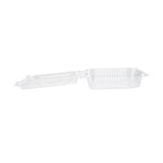 Keep your food fresh and secure with reliable packaging. The Thermo Tek Clamshell Clear Plastic Takeout Container is designed with a clamshell structure that ensures the freshness of your snacks and meals, catering to the operational needs of busy kitchens. Featuring a clear plastic construction, this plastic clamshell container enhances food presentation by allowing full visibility of contents, making it easier for customers to identify their orders. Crafted from durable PET plastic, it withstands the fast-paced demands of foodservice environments, reducing the risk of container damage during takeout and delivery. The BPA-free plastic supports healthier, sustainable operations, aligning with eco-conscious practices while ensuring food safety. With dimensions of 8.25 inches in length, 5.75 inches in width, and 1.75 inches in height, this disposable food container is versatile enough for a variety of entrees and desserts. Enhance your takeout service efficiency and maintain food presentation integrity with these containers. Each order includes 100 Thermo Tek Clamshell Clear Plastic Takeout Containers.