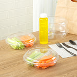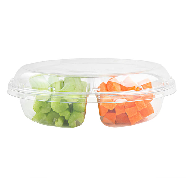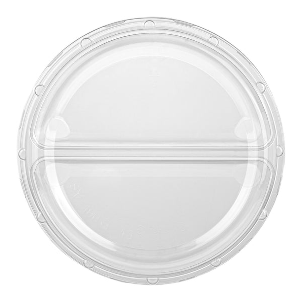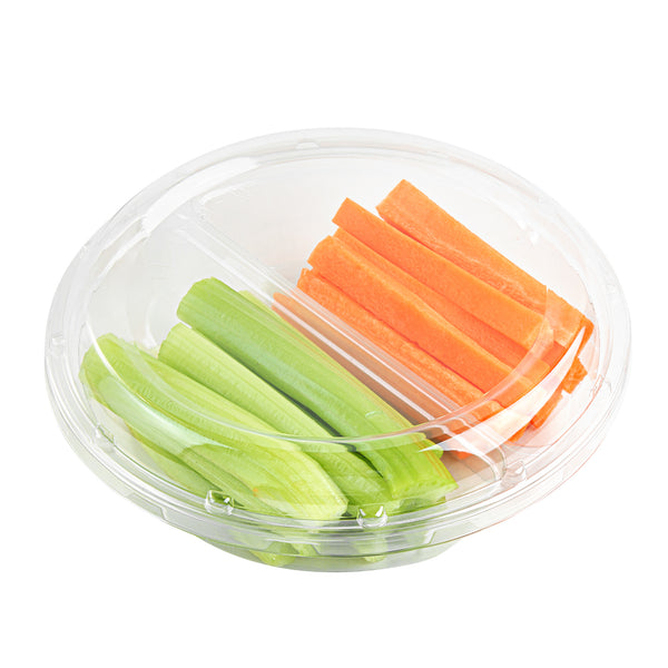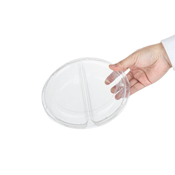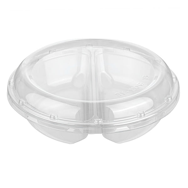 ROUND CLEAR PLASTIC SERVING PLATTER - WITH LID, 2 COMPARTMENTS