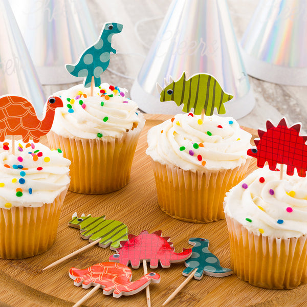 - Assorted dinosaur toppers allow for versatile decoration on cakes