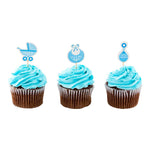 Enhance your dessert presentations with eye-catching details. The Top Cake Baby Shower Cake Topper, featuring a double-sided display, ensures that your cakes and cupcakes are beautifully visible from every angle, making it a perfect baby shower cake topper. Attached to sturdy wooden toothpicks, these toppers provide exceptional stability, keeping your decorative elements upright throughout the event and functioning as reliable cupcake toppers. The playful blue finish adds a fun, thematic touch to baby boy showers and gender reveal parties, aligning perfectly with your event’s decor and serving as an ideal gender reveal cake topper. Measuring 3.4 inches long by 1.4 inches wide, these toppers are designed to complement standard-sized treats, ensuring a balanced and cohesive look. Add a touch of charm to your next event with these versatile cake toppers. Sold in a bundle of 48.