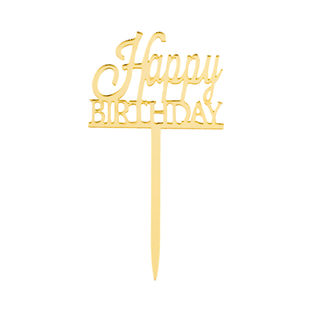 GOLD ACRYLIC CLASSIC HAPPY BIRTHDAY CAKE TOPPER - MIRRORED