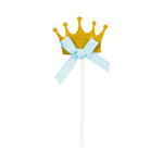 GOLD PAPER CROWN CAKE TOPPER - GLITTER, BLUE BOW