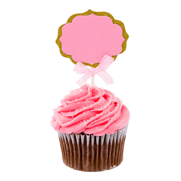 PINK PAPER DIY PERSONALIZED CAKE TOPPER - BOW, GOLD GLITTER RIM