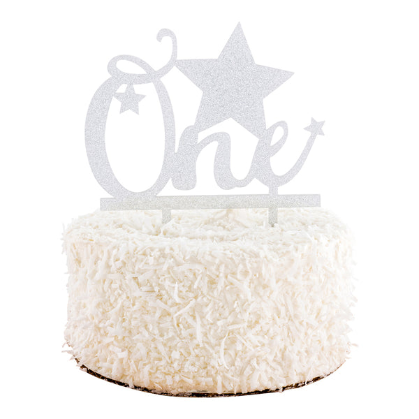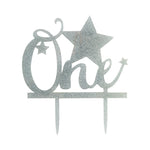SILVER ACRYLIC ONE CAKE TOPPER - GLITTER STARS