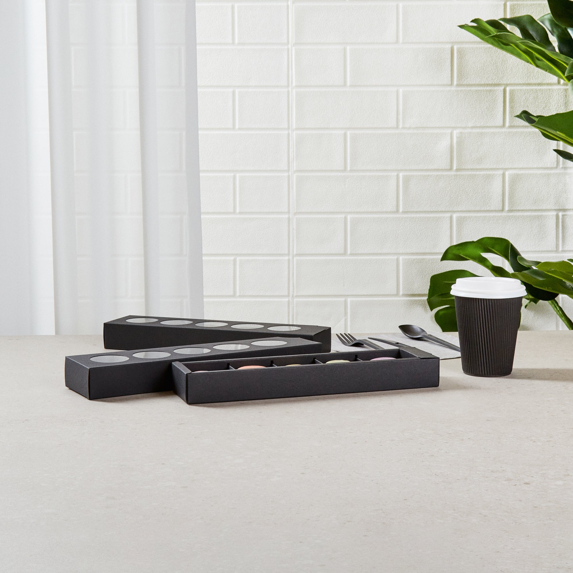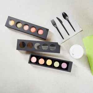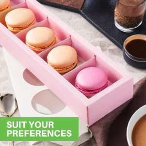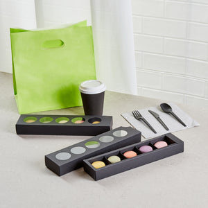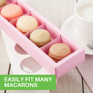 The rectangle design of these pastry boxes is designed to comfortably fit 5 macarons, making it the perfect choice for gift-giving or neatly organizing your tasty creations. Space-efficient and practical.