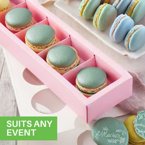 These paper macaron boxes are available in various color options to match your personal style or theme of the party. Tailor your presentation effortlessly!