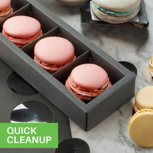 To make cleanup a bremacarons take out boxes are disposable, making them ideal for all eventsr all event and occasions. Simply enjoy your delicious macarons and then toss the hassle of washing dishes aside.