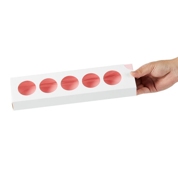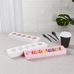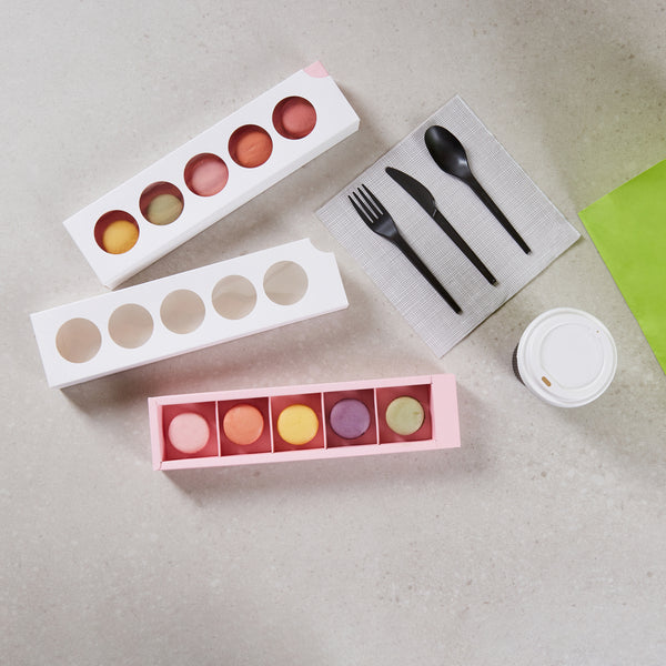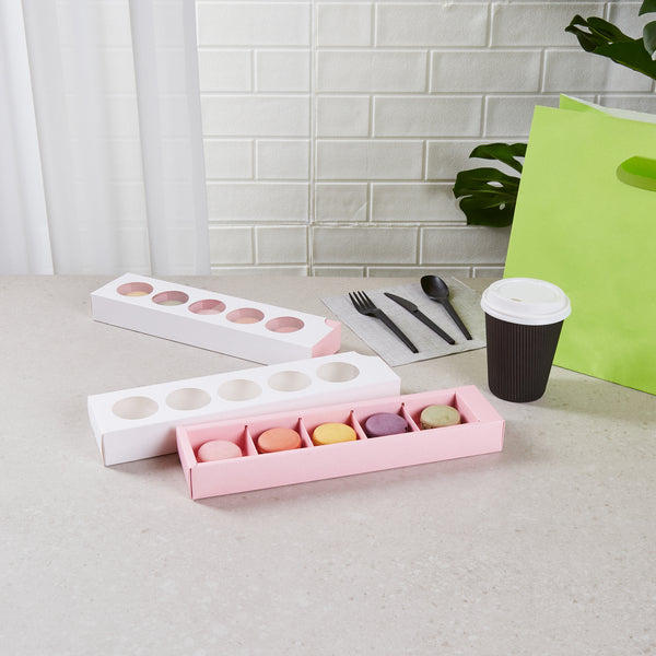 The rectangle design of these pastry boxes is designed to comfortably fit 5 macarons, making it the perfect choice for gift-giving or neatly organizing your tasty creations. Space-efficient and practical.