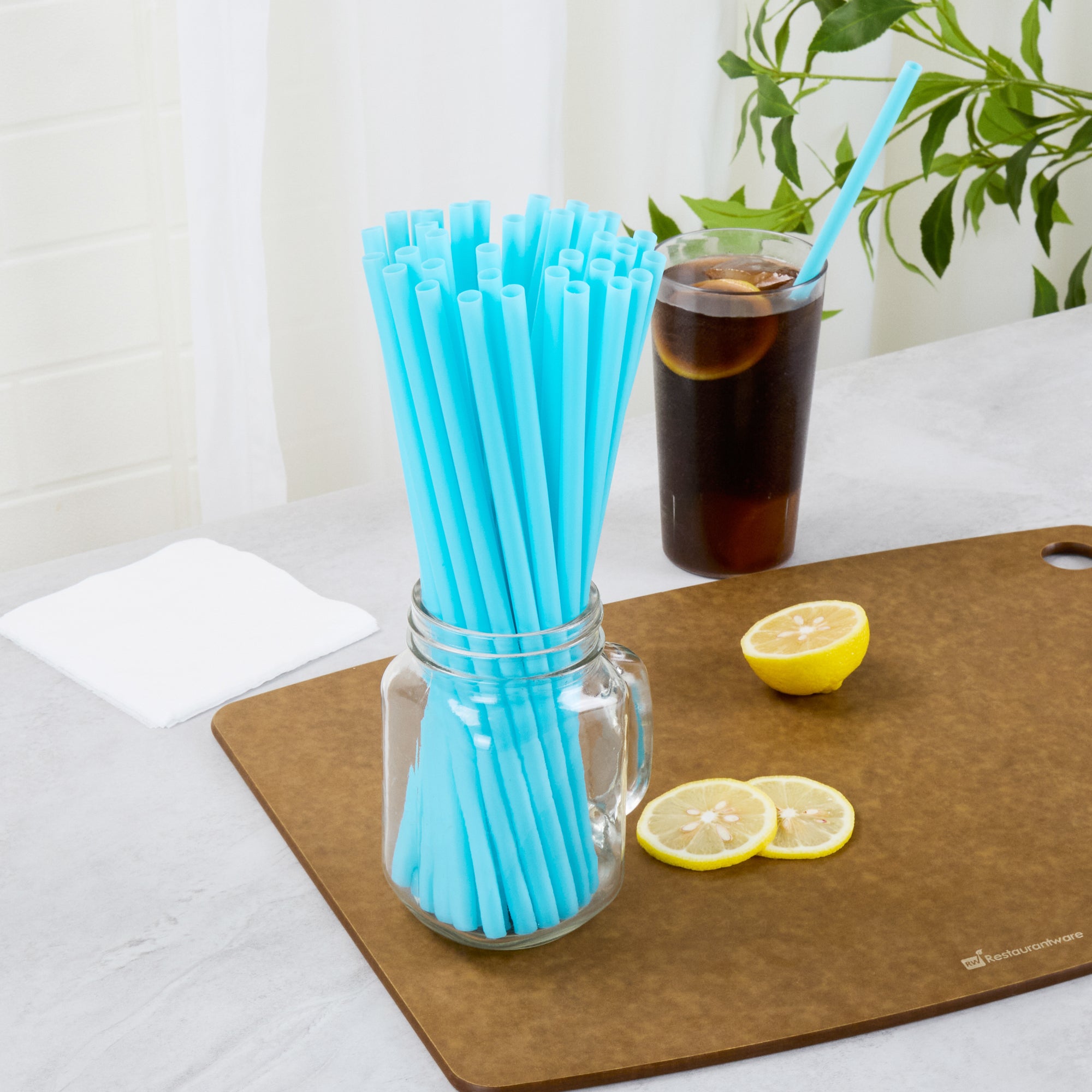 Enhance your eco-friendly beverage service effortlessly. The Vanish Home Compostable Biodegradable Straw offers unwrapped convenience that speeds up service during rush hours, helping you maintain efficiency in a bustling environment. Crafted from home compostable PHA plastic, this biodegradable straw reduces environmental impact without compromising durability. At 10.236 inches long, this smoothie straw is perfect for reaching the bottom of tall cups, making it ideal for juice bars and cafes. Its 8 mm width is specifically designed for effortlessly sipping thick smoothies, ensuring a smooth drinking experience for your customers. The vibrant blue color adds a pop of color to your drink presentation, while the compostable material supports your sustainability goals. Upgrade your straw selection with these reliable, eco-friendly options today. Each order includes 1000 Vanish Home Compostable Biodegradable Straw.