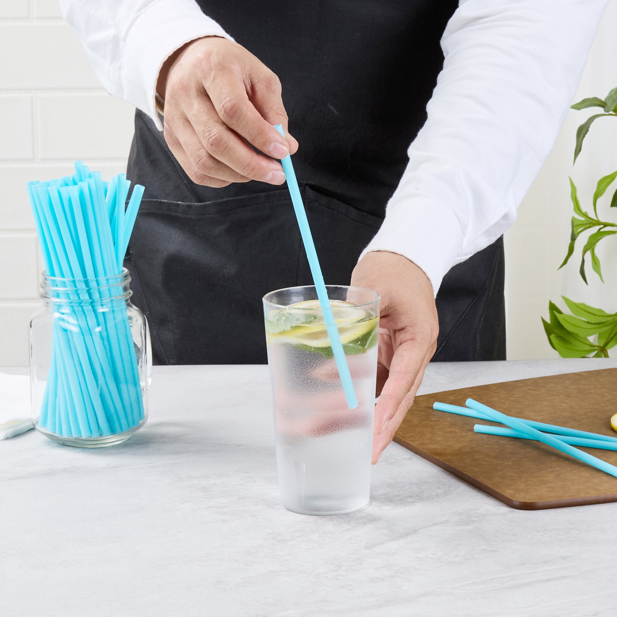 Enhance your eco-friendly service with sustainable sipping solutions. Vanish Biodegradable Blue Plastic Straws offer an environmentally conscious choice with their home compostable PHA plastic, supporting your green initiatives without compromising on performance. These compostable straws are unwrapped, providing the convenience of immediate use in busy settings where every second counts. Featuring a 6 millimeter width, these cold drink straws ensure easy sipping of juices and other beverages, making them ideal for a variety of foodservice applications. Crafted from durable blue plastic, these biodegradable straws maintain their integrity in cold drinks without softening or losing shape. Upgrade your beverage service with these straws, which are both recyclable and biodegradable, demonstrating a commitment to sustainability while enhancing customer satisfaction. Each order includes 100 Vanish Biodegradable Blue Plastic Straws.