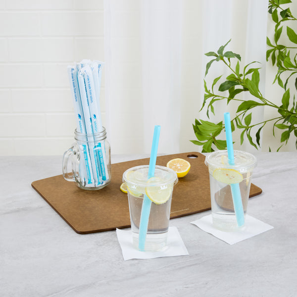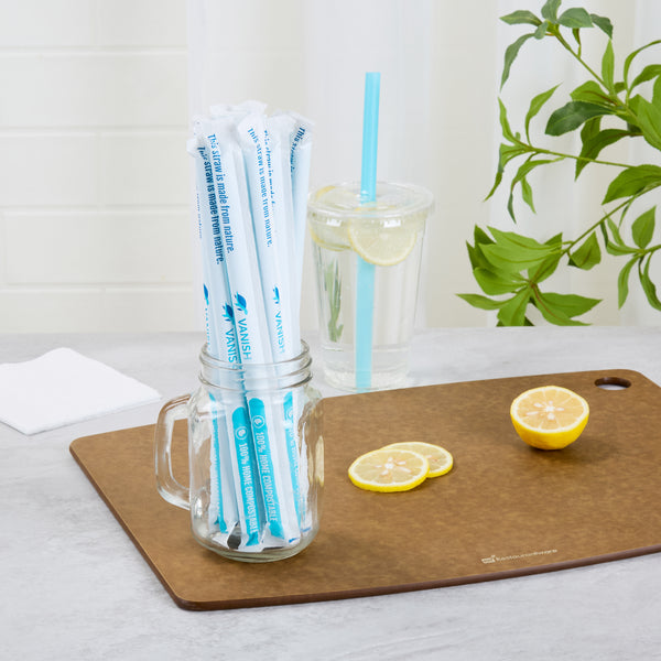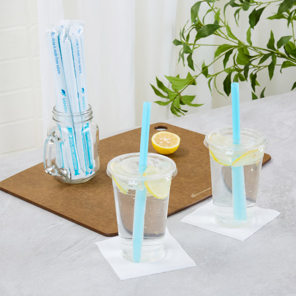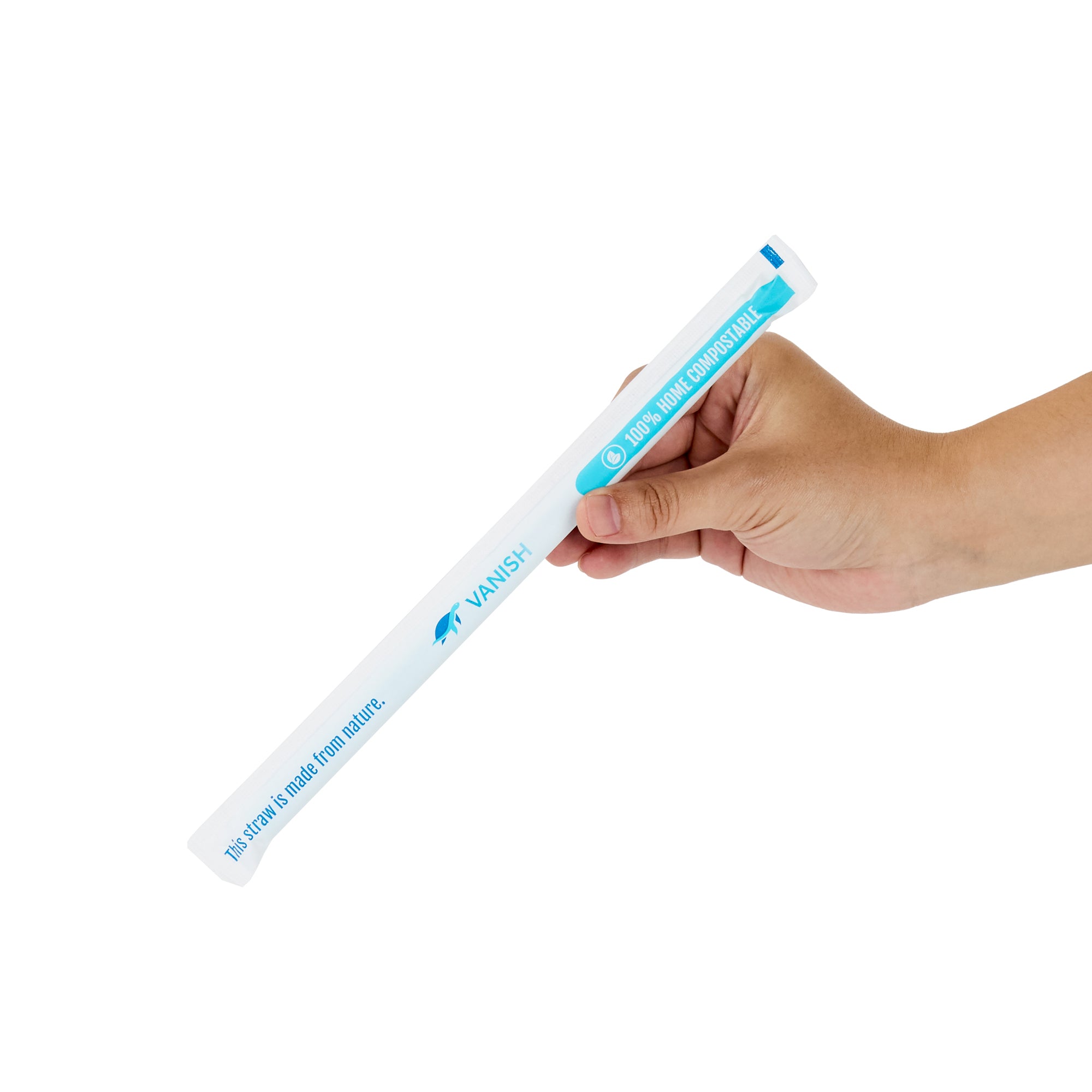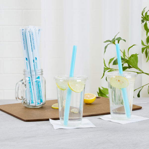 Ensure eco-friendly sipping with sustainable bubble tea straws. Vanish Home Compostable Bubble Tea Straws are crafted from home compostable PHA plastic, supporting eco-friendly initiatives and providing a sustainable alternative to traditional plastics. These jumbo straws are individually wrapped to guarantee hygiene, protecting them from external contaminants and ensuring customer safety. With a 13-millimeter width, these straws are ideal for effortlessly sipping bubble teas, enhancing customer experiences with every sip. The vibrant blue color adds a pop of color to any drink presentation, making these compostable straws an eye-catching choice for cafes and restaurants committed to sustainability. Upgrade your beverage service with these innovative straws and demonstrate your commitment to environmentally responsible practices. Each order includes 100 Vanish Home Compostable Bubble Tea Straws.