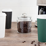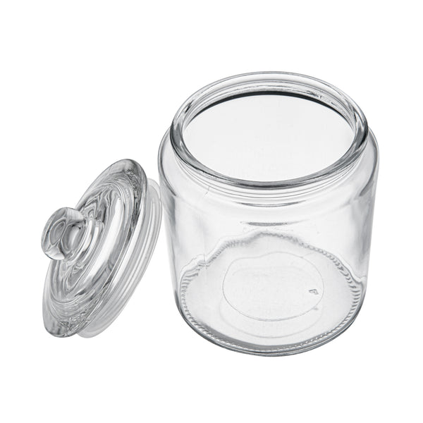 Maintain freshness with Vetri Glass Food Storage Containers. These airtight glass food storage containers, measuring 4.33 inches in length and width and 6.1 inches in height, feature an airtight lid that effectively preserves the freshness of your stored ingredients, making them an essential part of any commercial kitchen's storage solutions. The convenient knob handle ensures easy access, allowing for fast service and efficient food preparation, which is crucial in high-demand foodservice environments. Constructed from premium glass, these containers are not only durable but also dishwasher-safe, enabling quick and efficient cleaning to streamline your kitchen operations. The clear design enhances visibility, making them ideal as glass apothecary canisters for organizing and displaying ingredients or decorative items. Enhance your kitchen's efficiency and organization by integrating these versatile airtight glass jars into your food storage strategy. Each order includes 1 Vetri Glass Food Storage Container.
