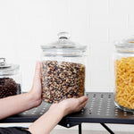 Maintain the freshness of your ingredients effortlessly. Vetri Airtight Glass Storage Containers feature an airtight lid that preserves the freshness of contents, providing an extended shelf life for your culinary creations. The ergonomic knob handle ensures easy access to your ingredients during busy shifts, making these glass storage containers an indispensable tool in high-paced kitchens. Constructed from premium glass, these containers are not only durable but also dishwasher-safe, simplifying cleaning and maintenance. These airtight glass jars measure 5.91 inches in both length and width, with a height of 8.27 inches, offering a capacity of 0.53 gallons to store a variety of foods securely. Their clear, glass construction allows for quick identification of contents, enhancing efficiency in any foodservice environment. Elevate your storage solutions with these versatile apothecary canisters. Each order includes 1 Vetri Airtight Glass Storage Container.