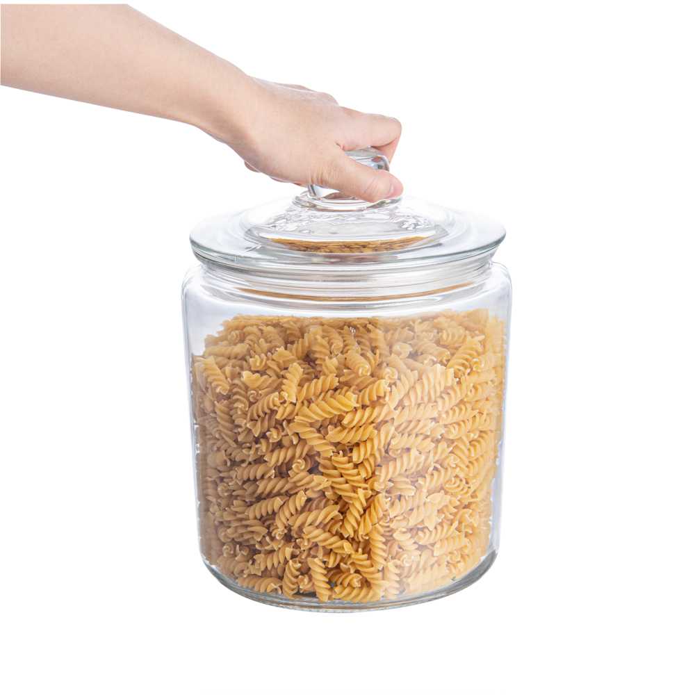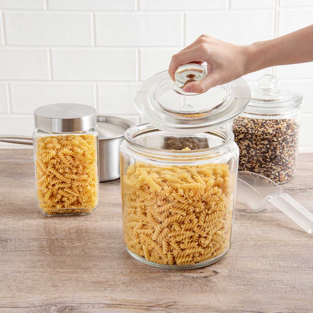 Preserve the freshness of your ingredients effortlessly. Vetri Airtight Glass Food Containers feature an airtight lid that safeguards the quality of baked goods and snacks, ensuring they remain deliciously fresh. These glass food containers, with dimensions of 6.89 inches in length, 6.89 inches in width, and 9.65 inches in height, are crafted from clear, durable glass, making them not only aesthetically pleasing but also dishwasher-safe for convenient cleaning. The ergonomic knob handle provides a comfortable grip, allowing for easy access to stored ingredients, making it an ideal solution for busy commercial kitchens. The premium glass construction of these airtight glass jars guarantees longevity and resilience, while the secure lid ensures that all contents are safely stored, enhancing foodservice operations. Elevate your storage solutions with these glass storage containers with lids, perfect for maintaining kitchen efficiency. Each order includes 4 Vetri Airtight Glass Food Container.