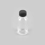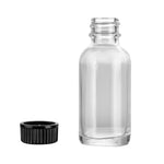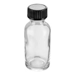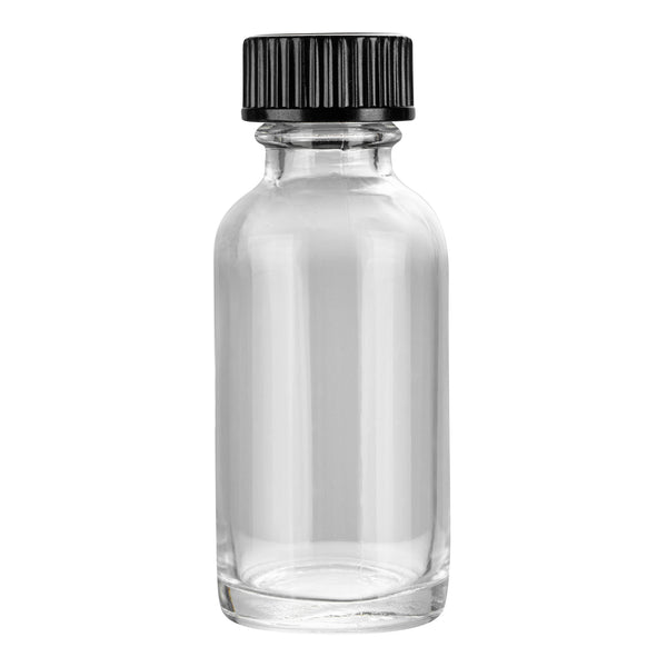 1 OZ BOSTON ROUND CLEAR GLASS BOTTLE - WITH BLACK PHENOLIC CAP
