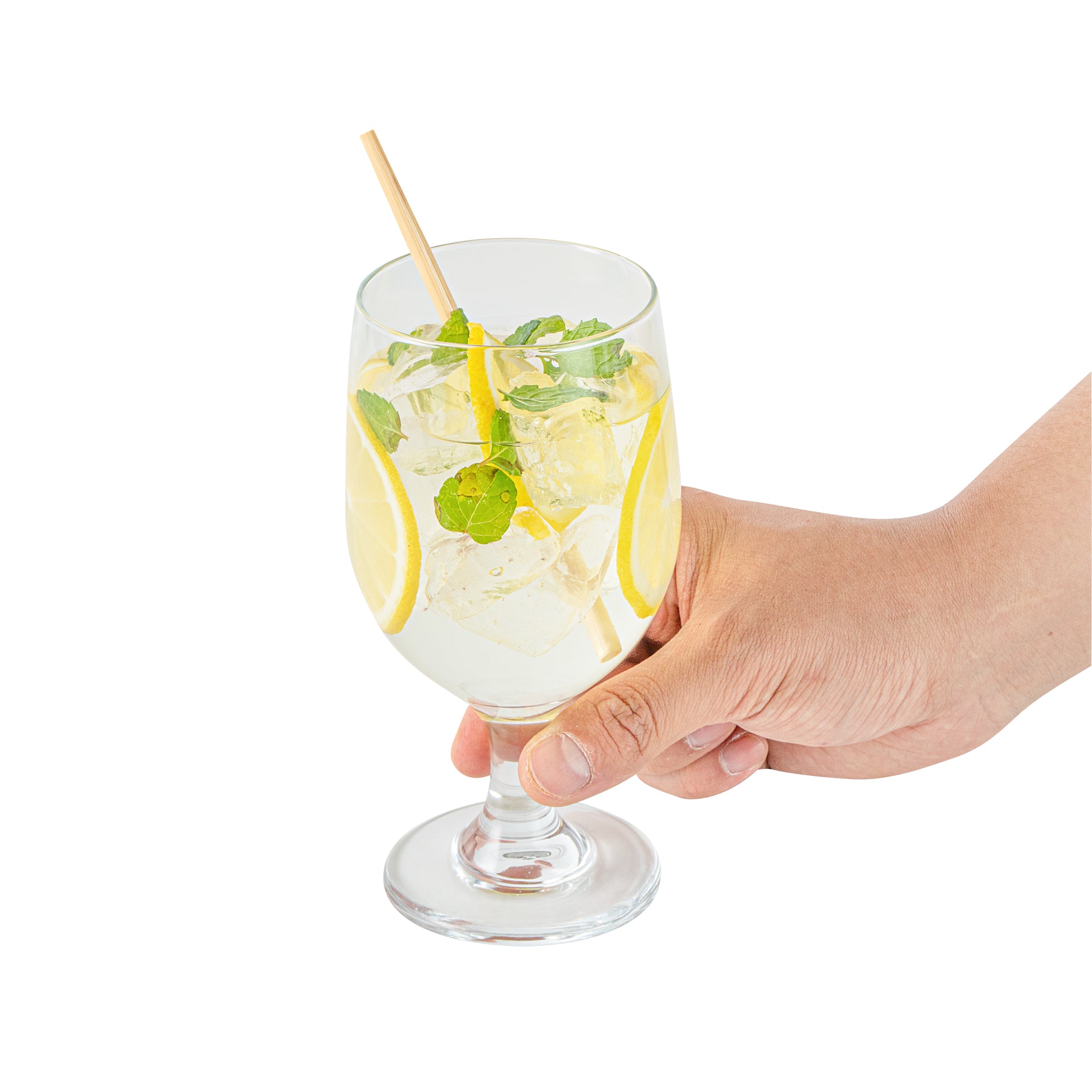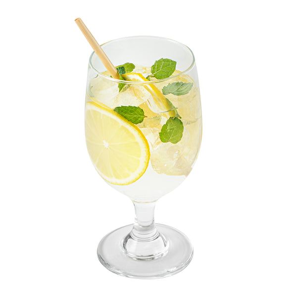 Present yummy cocktails with our Vetri 12-ounce Water Goblet Glasses. These drinking glasses have a crystal-clear finish and expertly showcase your effervescent brews, creating an attractive presentation. The top of these cocktail glasses provides a comfortable opening, allowing drinkers to savor their beverage fully. Featuring a thick stem, these wine glasses ensure optimal stability on trays, countertops, and tables. The robust foot of these bar glasses minimizes the risk of toppling over and reduces the chance of spills. Crafted from durable lead-free soda lime glass, these beverage glasses withstand regular use while maintaining their pristine appearance. Plus, these water glasses are dishwasher-safe and allow for a simple cleaning experience, saving you precious time. Measuring 2.84 inches in diameter by 6.02 inches in height, these bar glasses have a total capacity of 11.5 ounces. Sold in a 24 count box.
